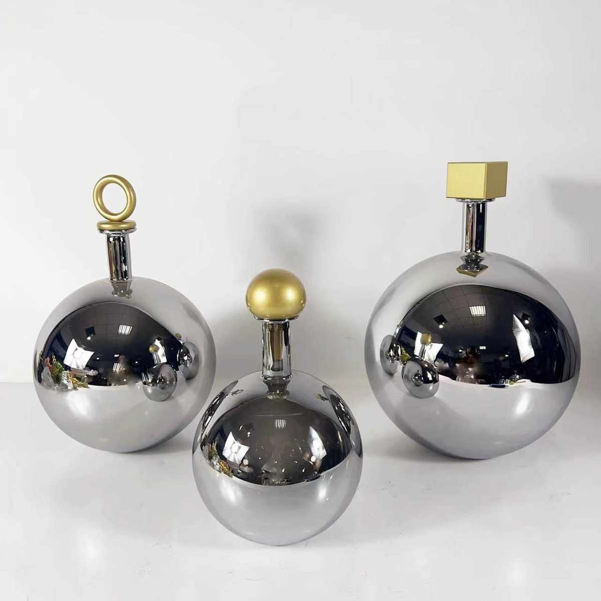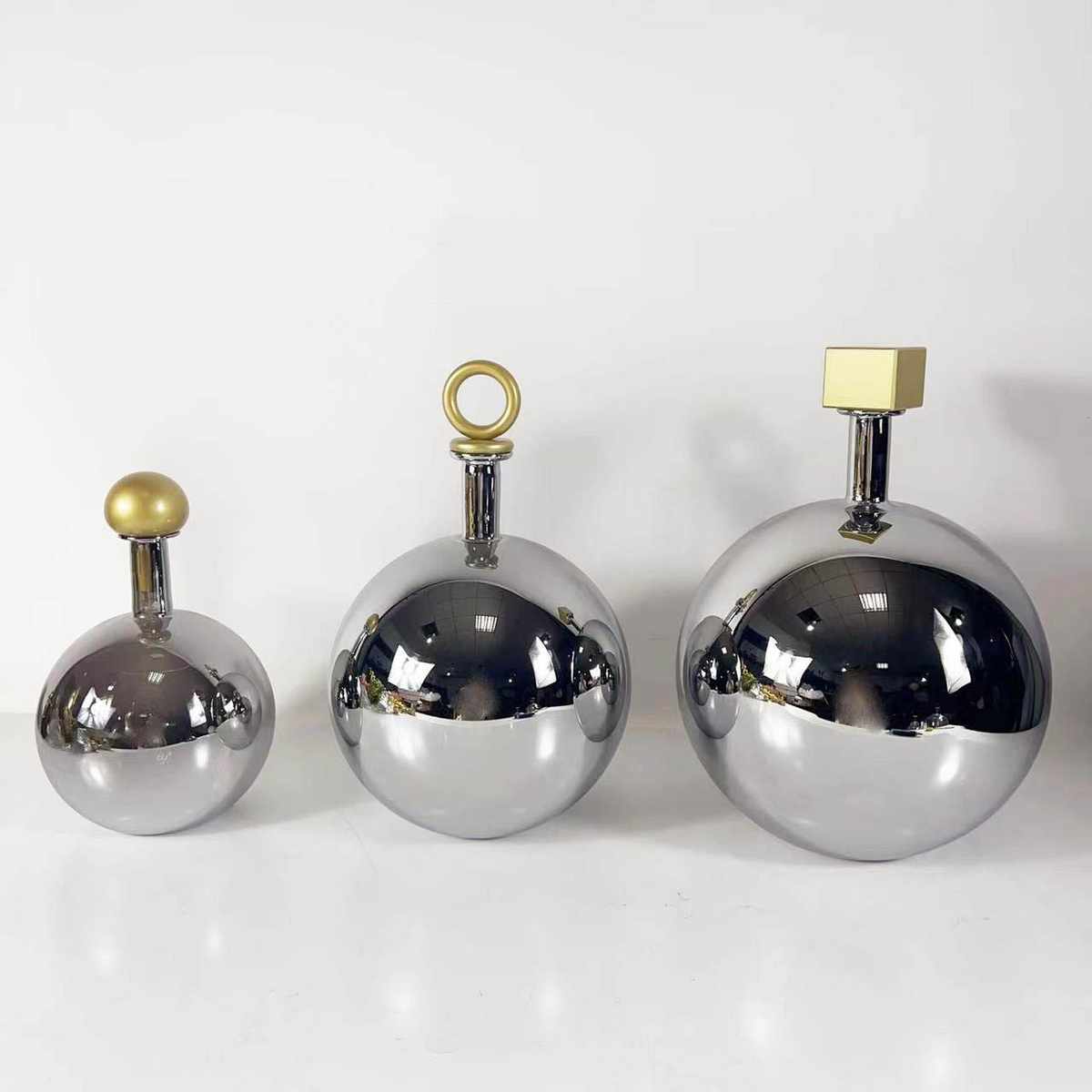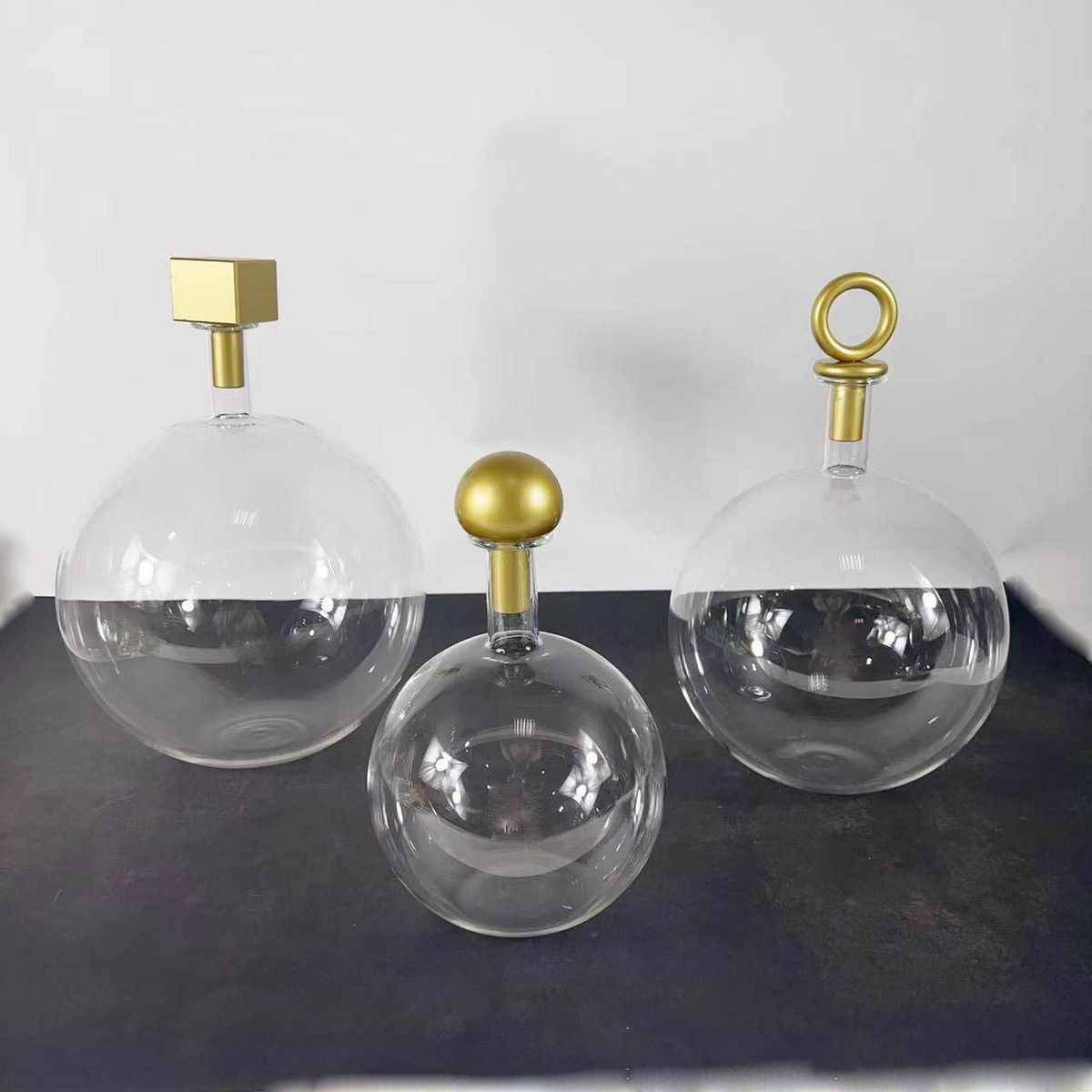 现代简约创意玻璃花瓶工艺品带金属盖样板房售楼处桌面玻璃摆件