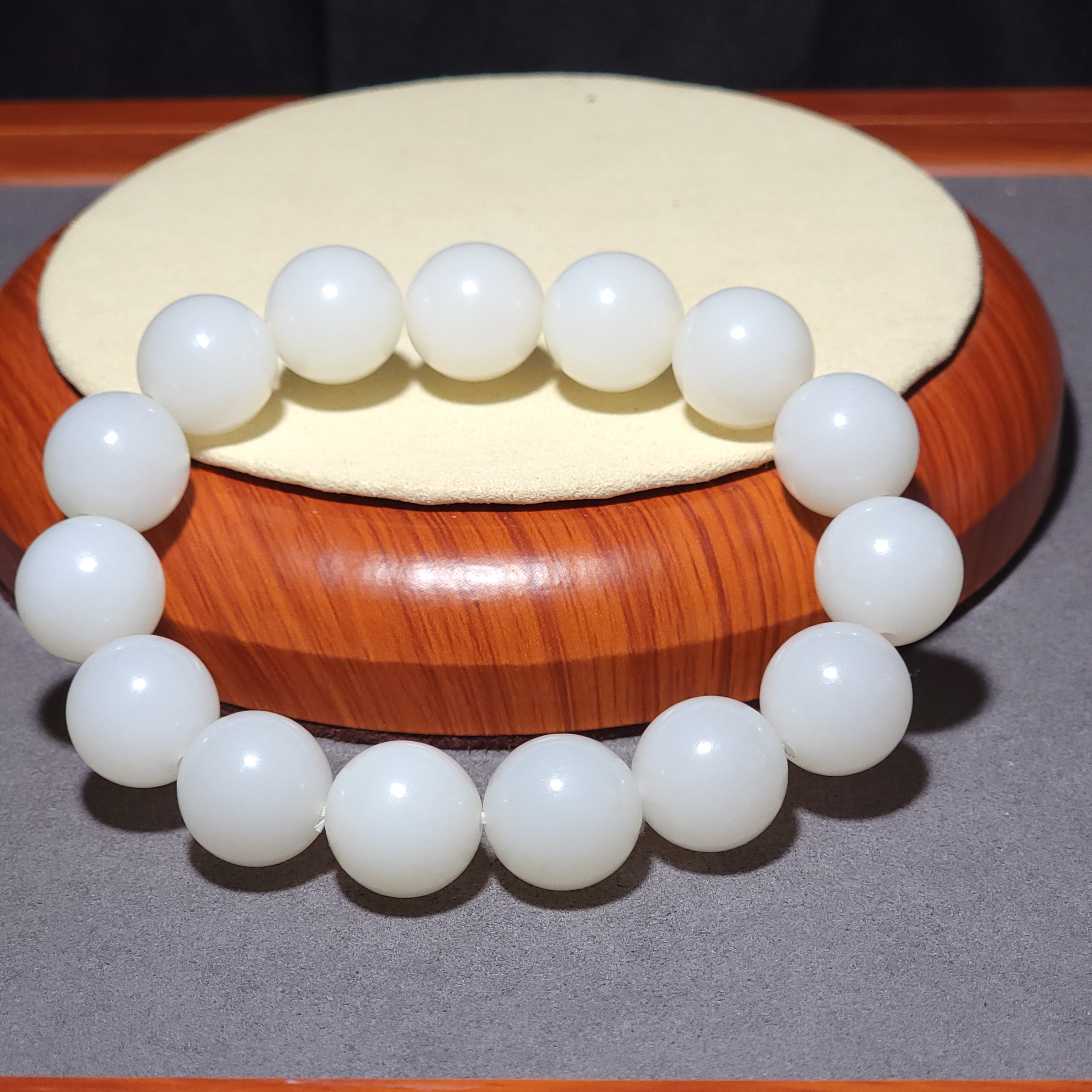 新疆的猫L071606 75.4克直径15mm脂粉浓郁俄料三高羊脂白圆珠手链