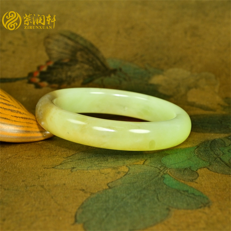 已结缘新疆和田玉糖黄玉手镯若羌黄口料57 5MM哑光俏色玉镯收藏级