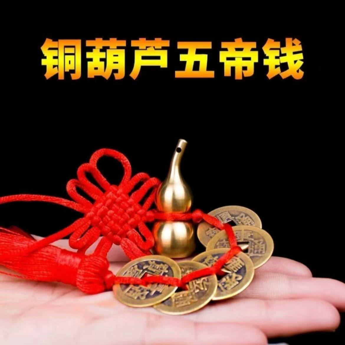 纯铜葫芦五帝钱真品铜钱入户门对门卧室厨房朱砂中国结吉祥结挂件