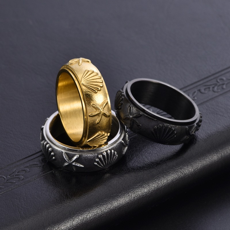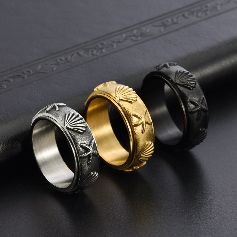 跨境原创钛钢可旋转海星贝壳复古戒指男士嘻哈可转动不锈钢食指环