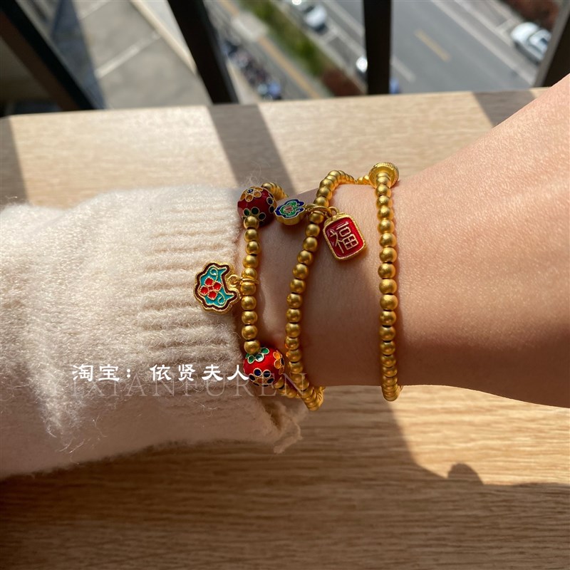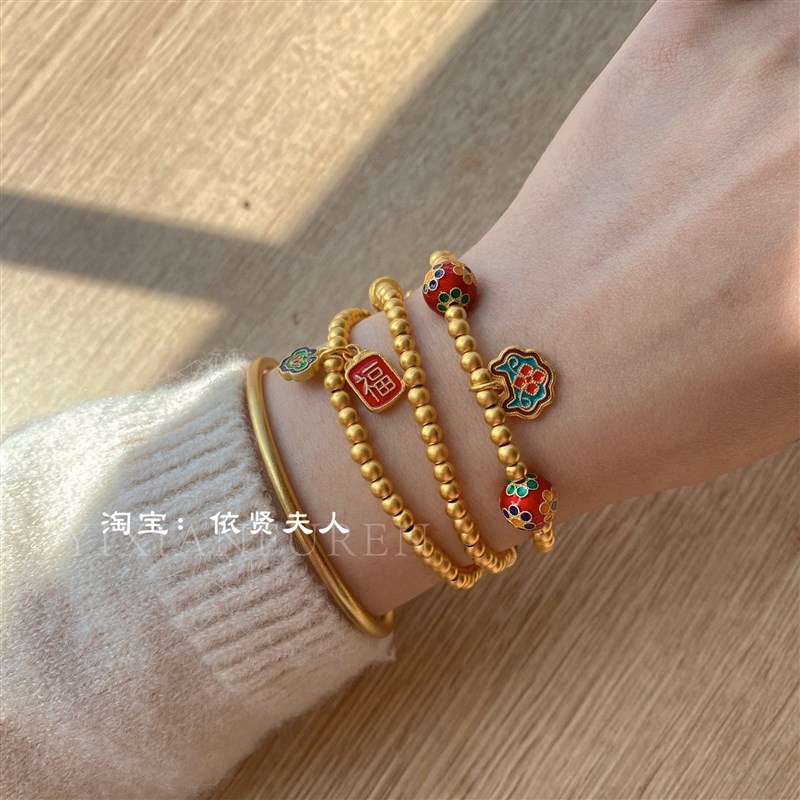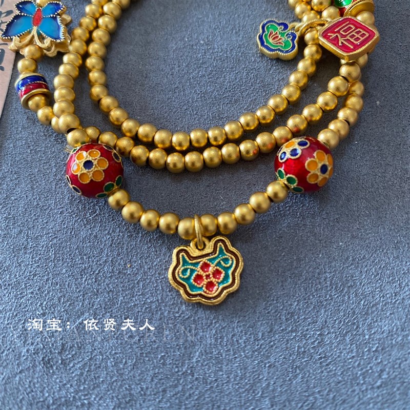 古法金三圈磨砂珠蝴蝶复古烧蓝配件多H圈项链女生男女情侣手链手
