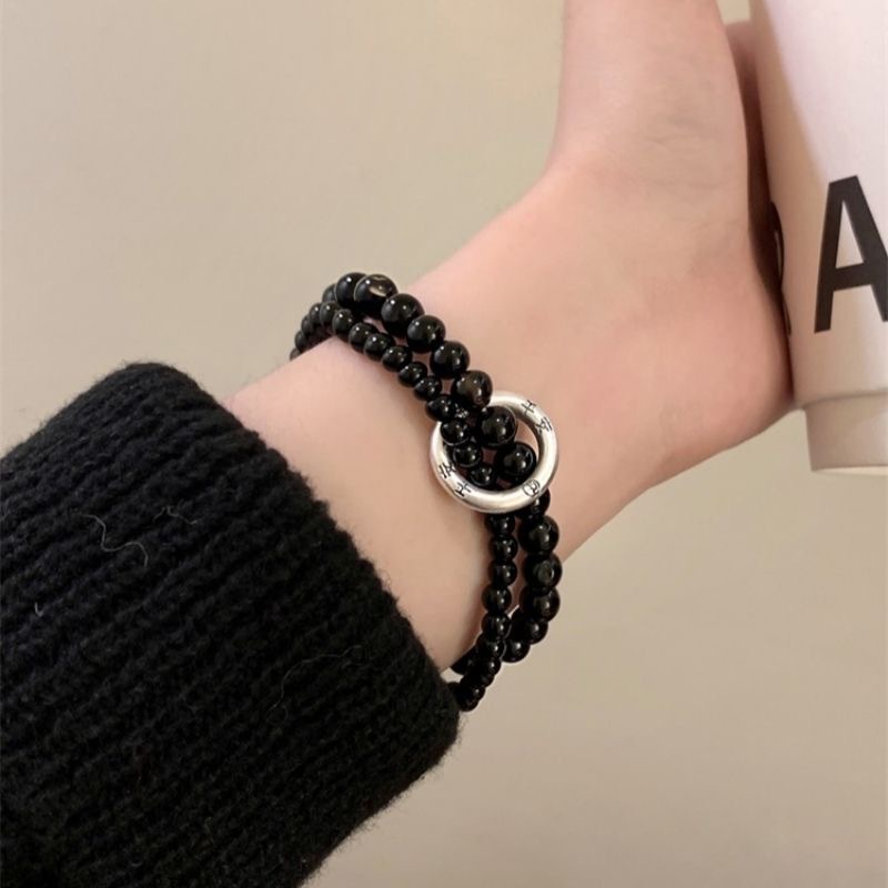 中式国潮平安扣串珠手链女古风设计清冷大牌手串双圈简单情侣小