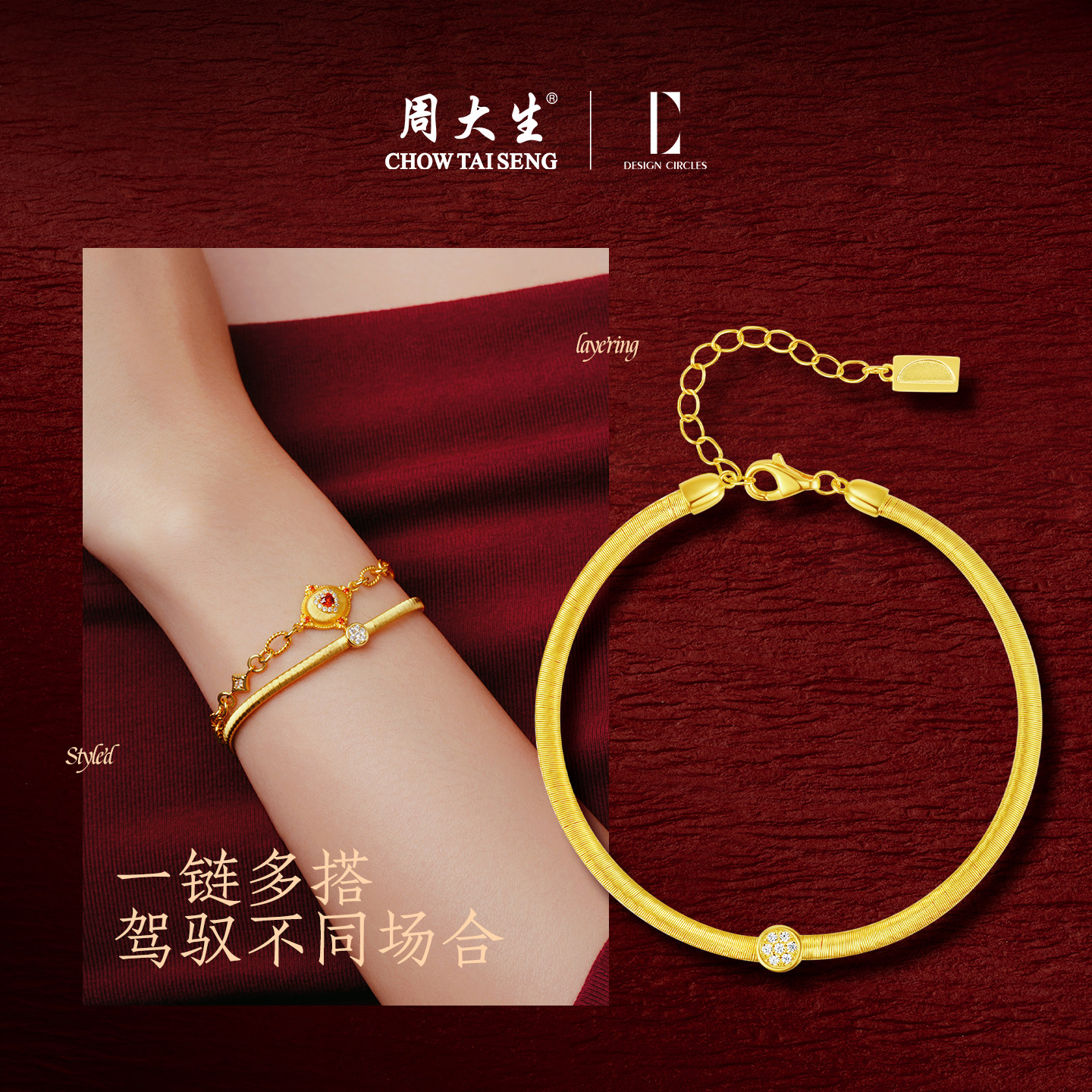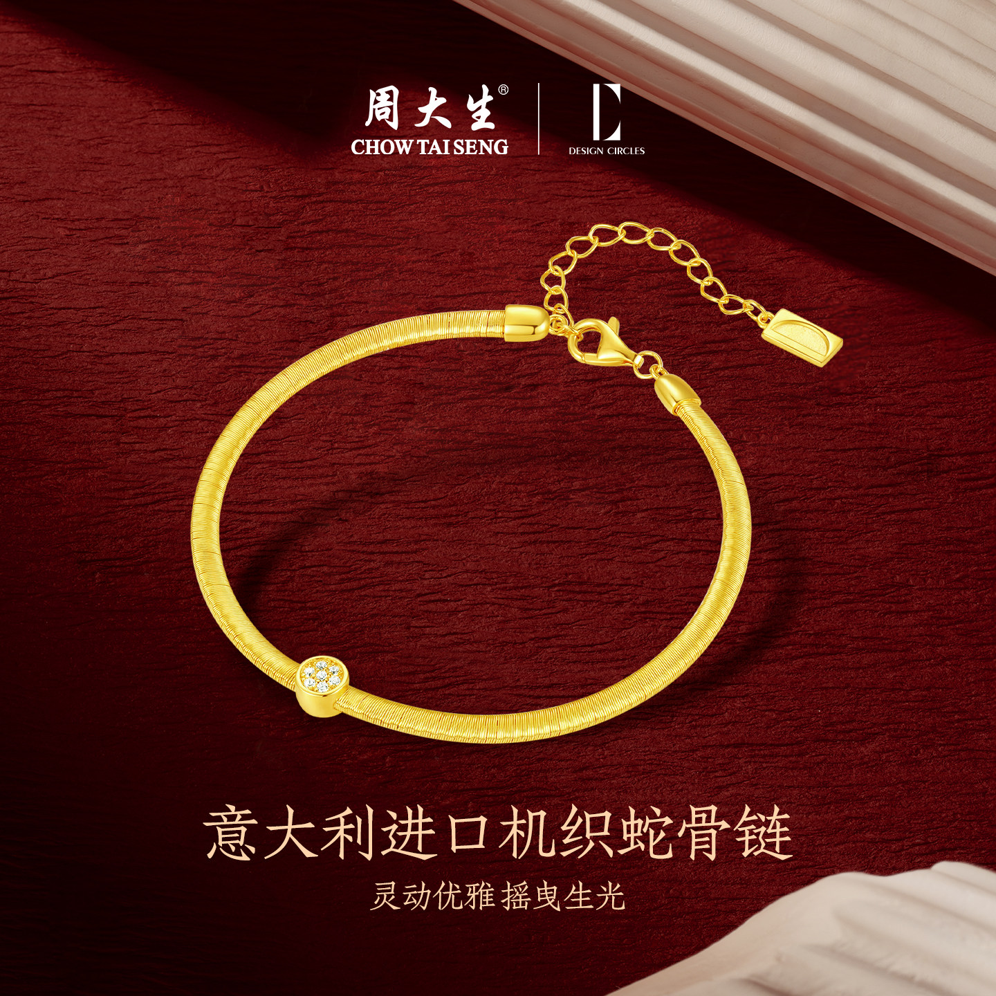 周大生金色黎明手链S925纯银女生轻奢高级感送女友生日礼物