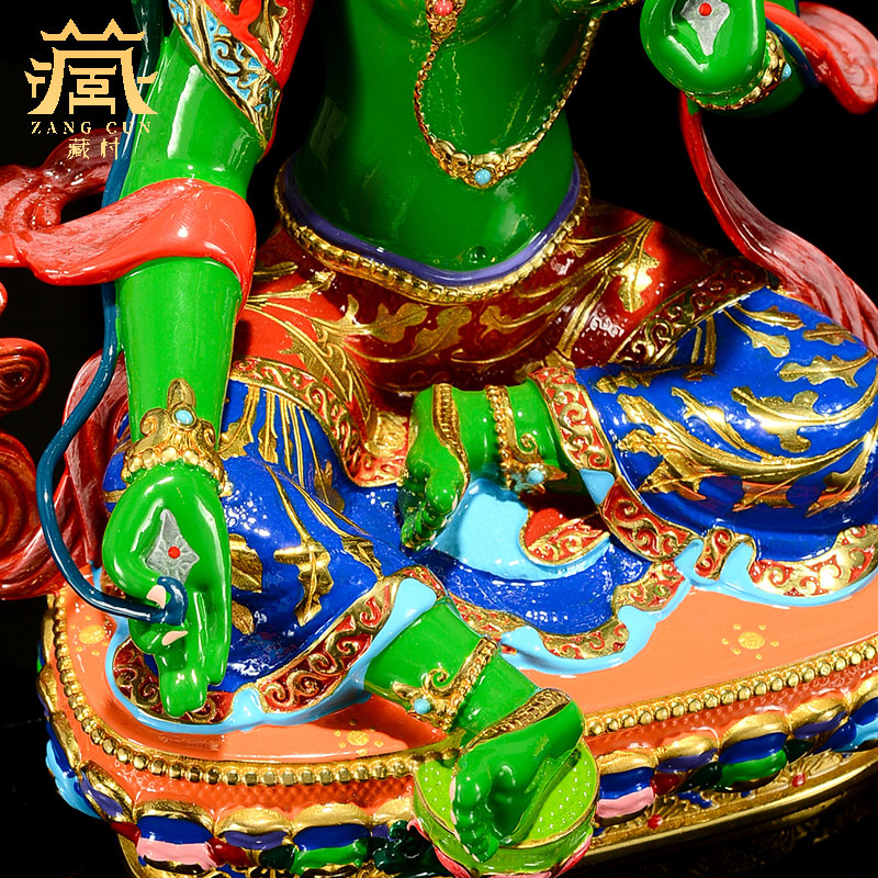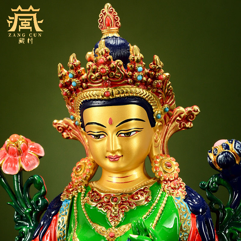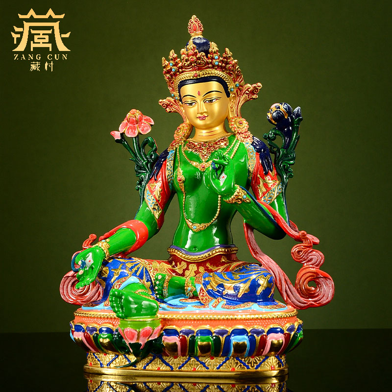 藏村绿度母铜像家用台湾铜像手工彩绘佛事用品铜器随身佛度母摆件