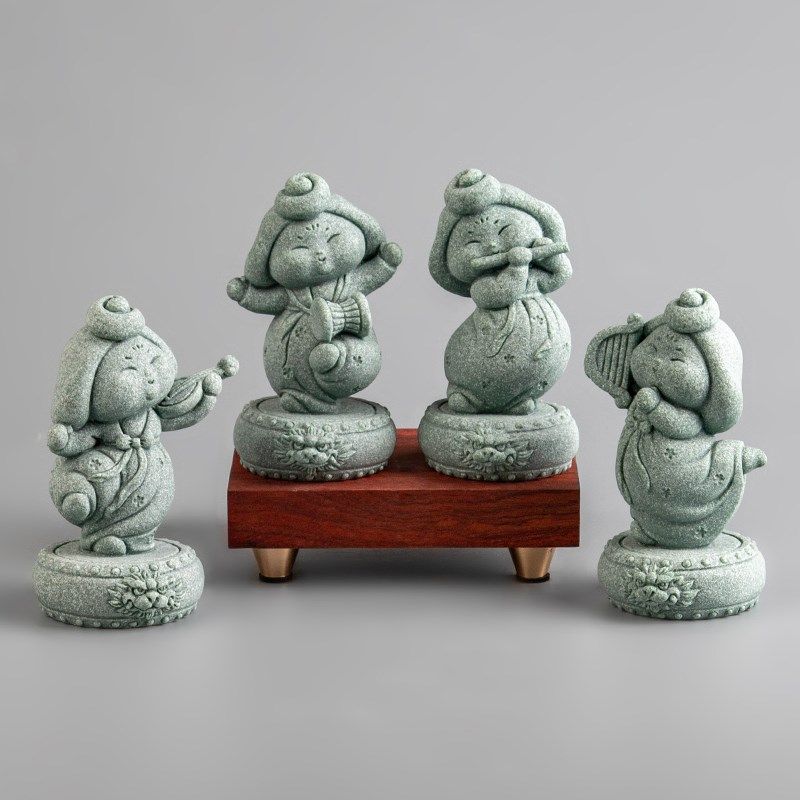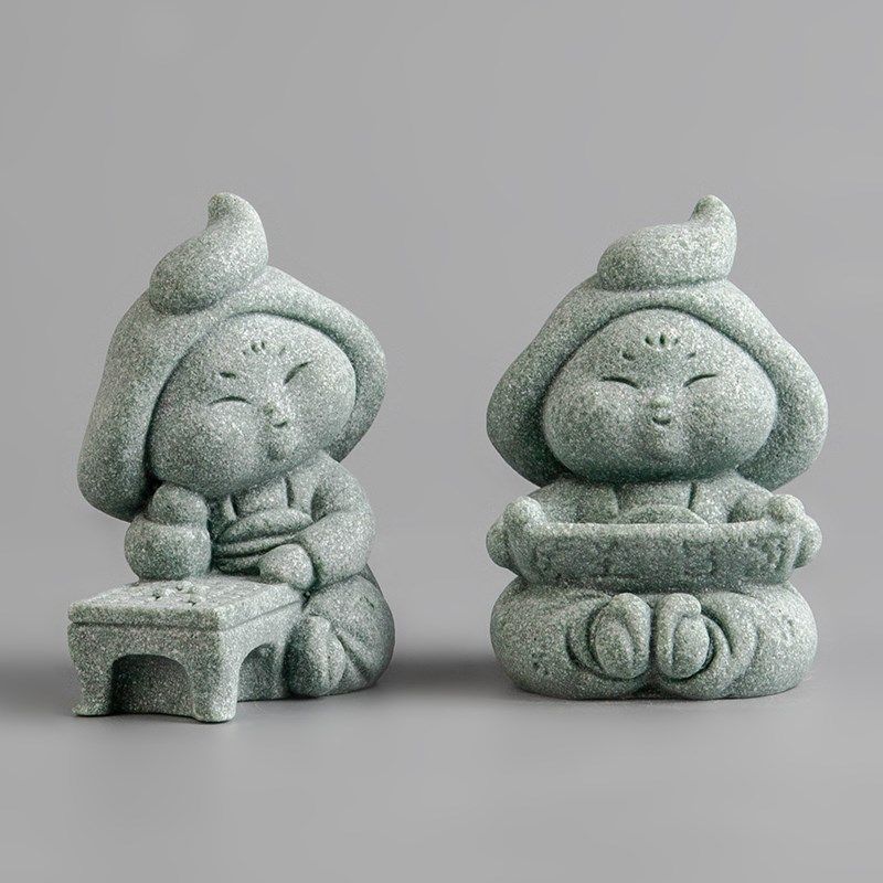 青砂石国潮风中式唐仕女茶几桌面茶玩茶宠园艺鱼缸造景装饰品摆件