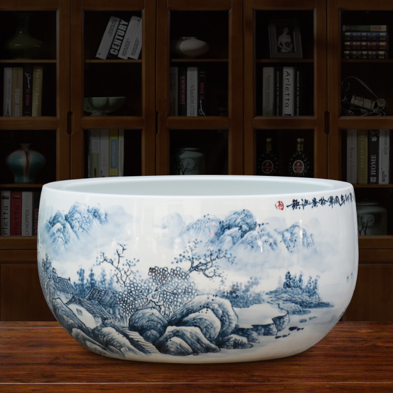 景德镇陶瓷聚宝盆大号新中式手绘青花瓷居家庭院装饰风水摆件