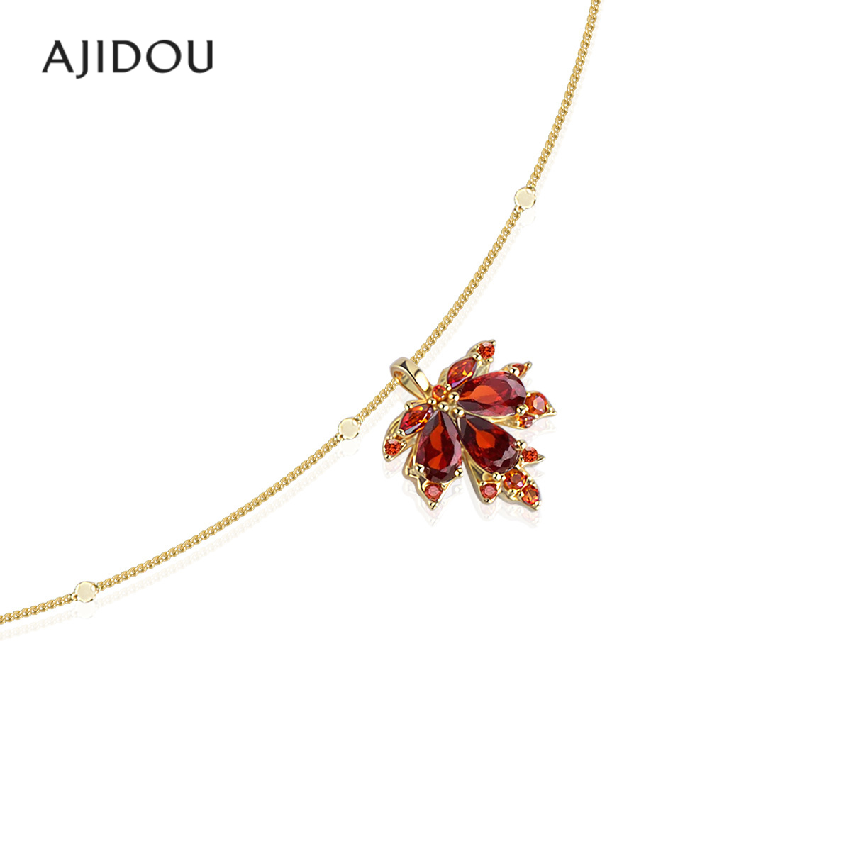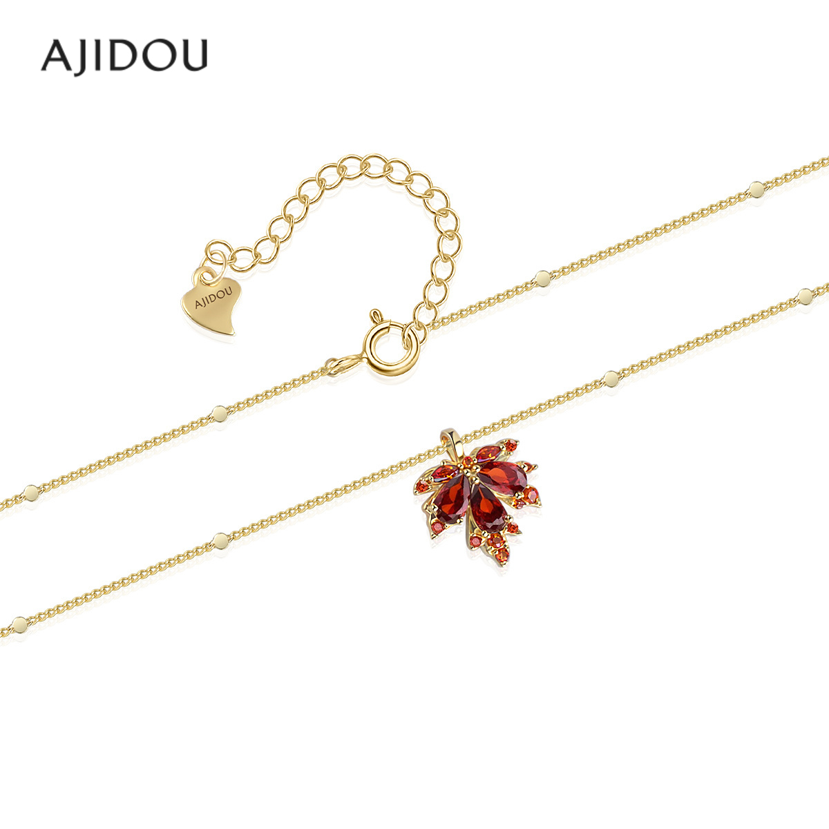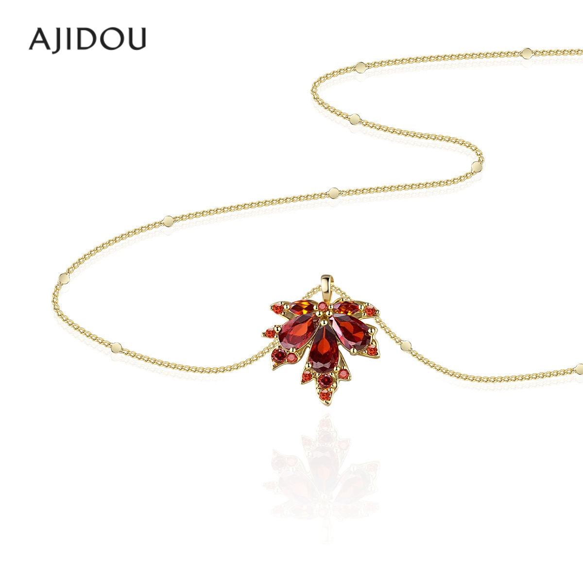 阿吉豆AJIDOU项链女款红色枫叶毛衣链法式复古轻奢配饰小众锁骨链