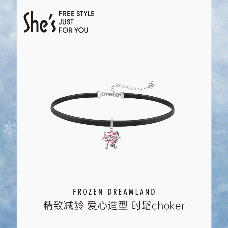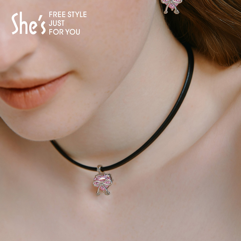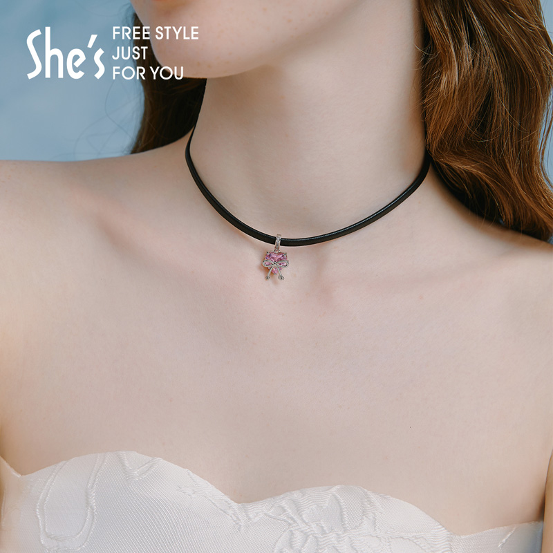 shes冰雪秘境时尚蝴蝶结项链轻奢小众锁骨链设计感吊坠情人节礼物