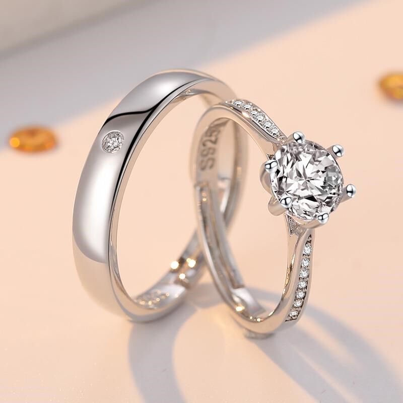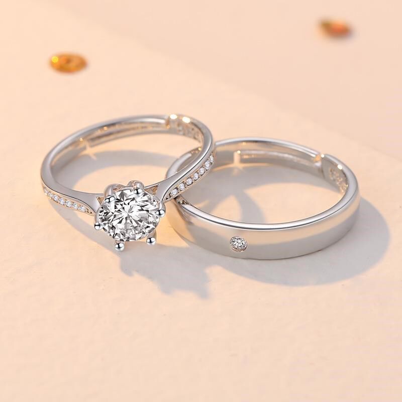 情侣结婚对戒婚礼仪式替代戒指新娘用的假道具一克拉六爪闭口钻戒
