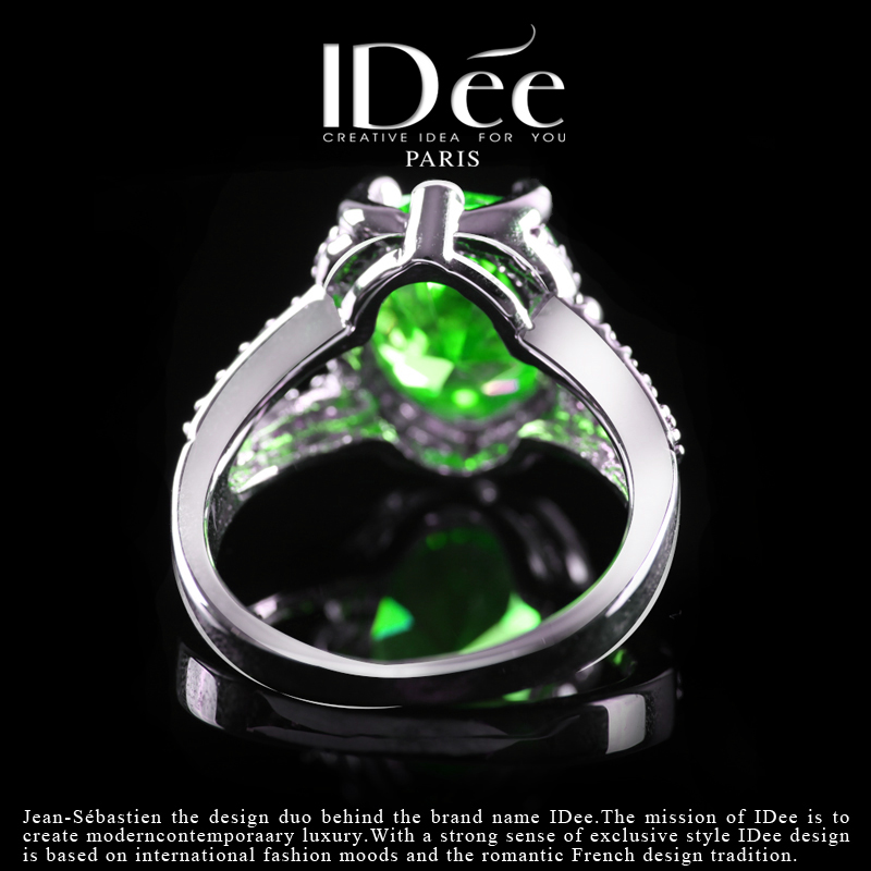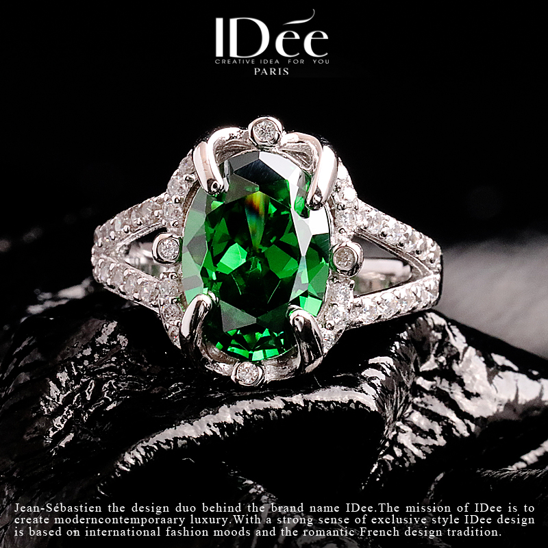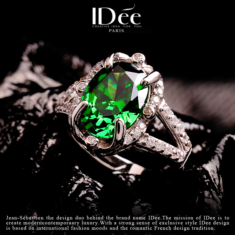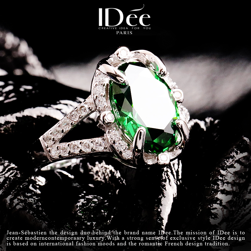 法国IDee戒指女气质时尚百搭宴会潮流食指戒925银祖母绿宝石饰品