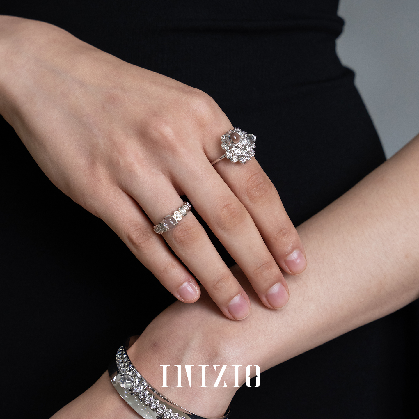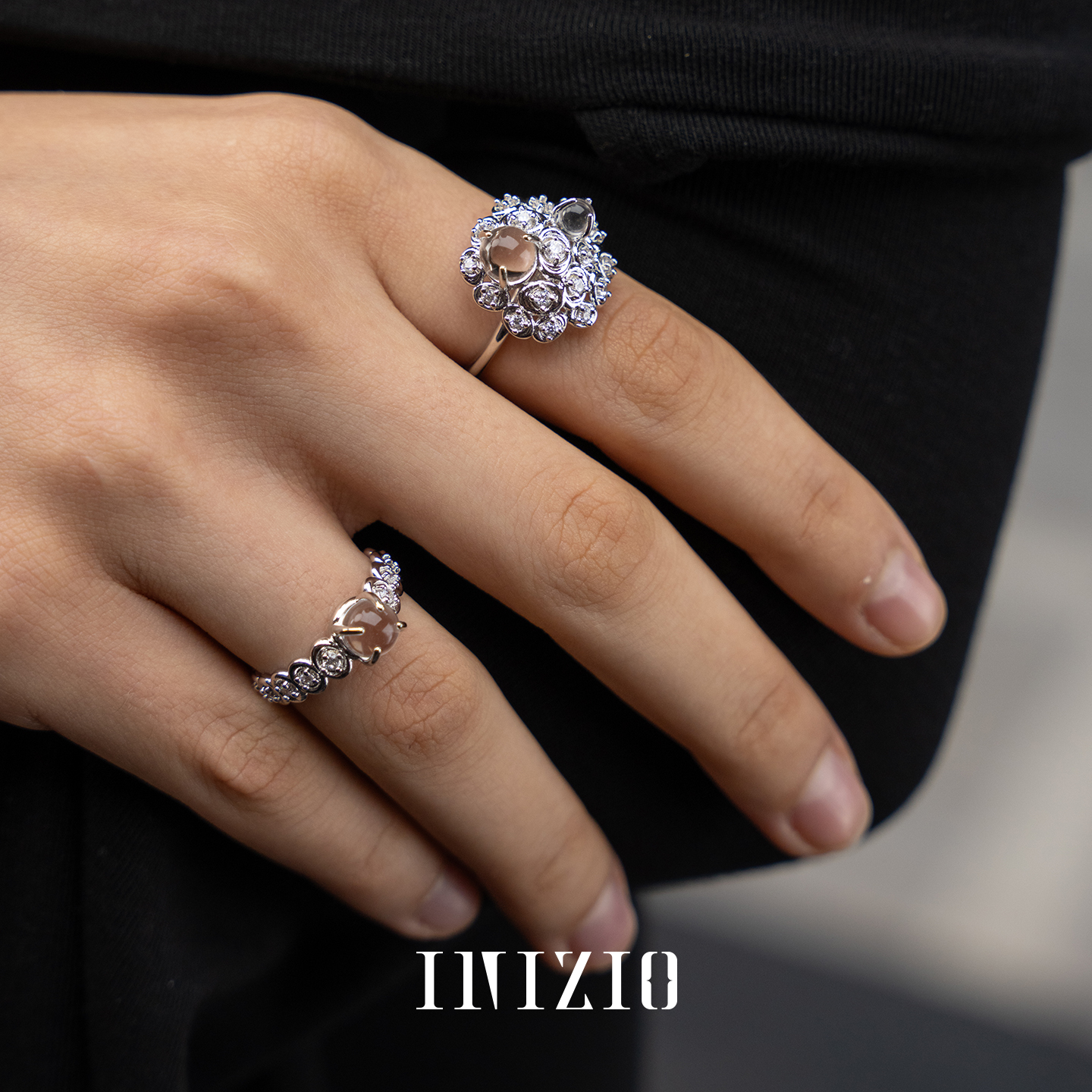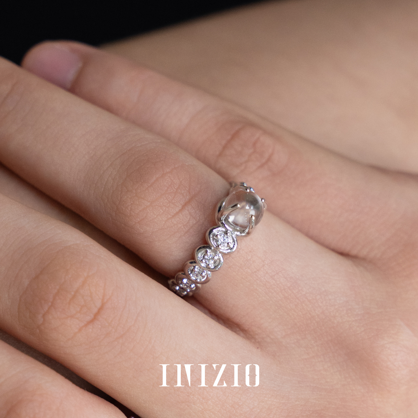 INIZIO 荣光系列白水晶戒指925银镀金时尚气质原创小众设计感开口