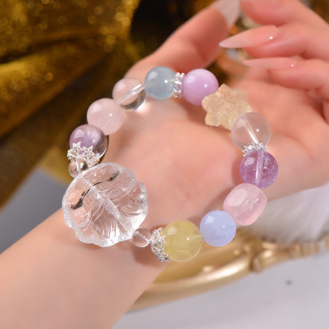 天然紫水晶白水晶九尾狐时尚设计多宝手链手串抖音小红书直播供货