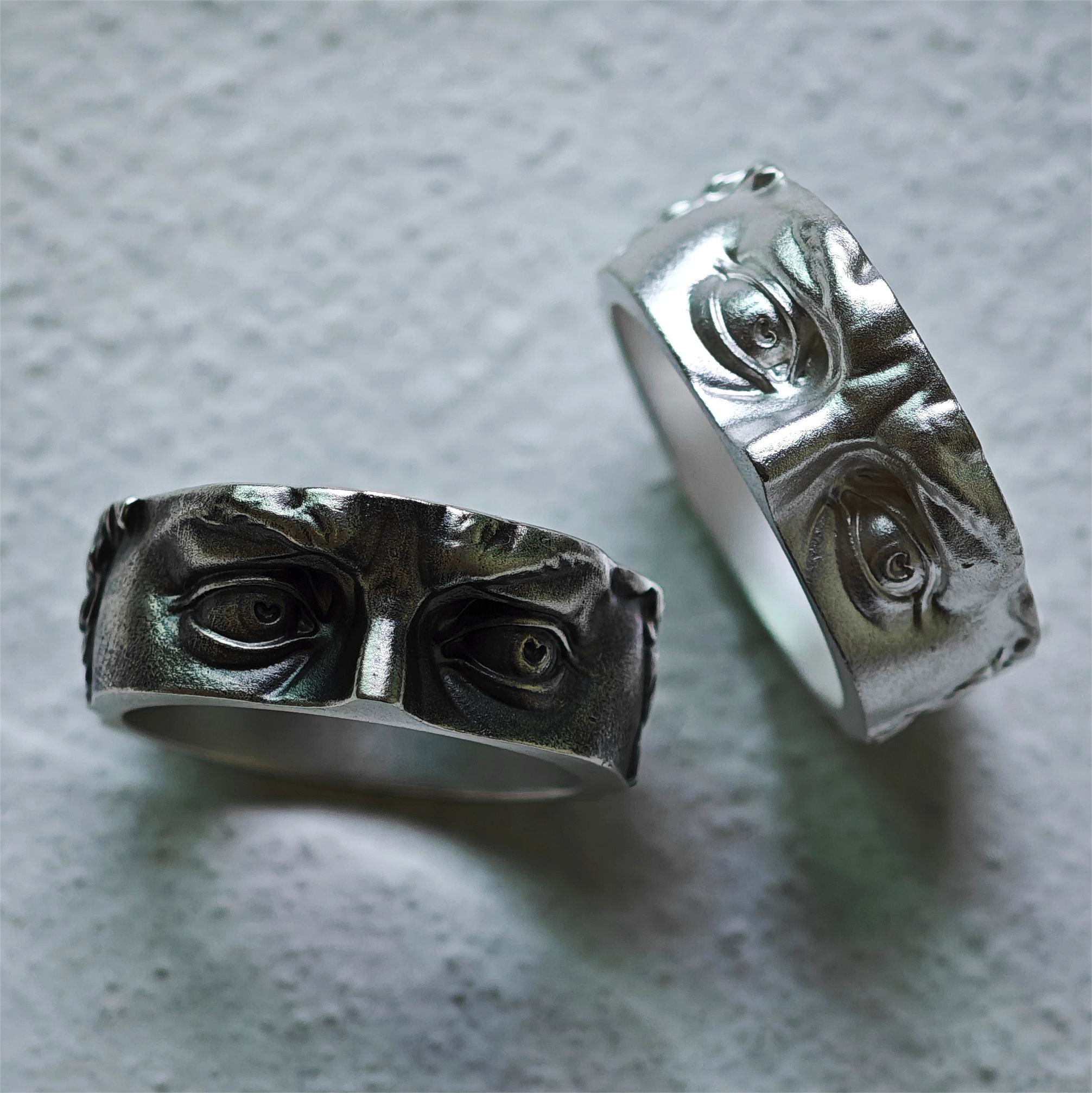 铁头的店原创戒指禁锢的天使大卫925纯银情侣款磨砂欧美风格指环