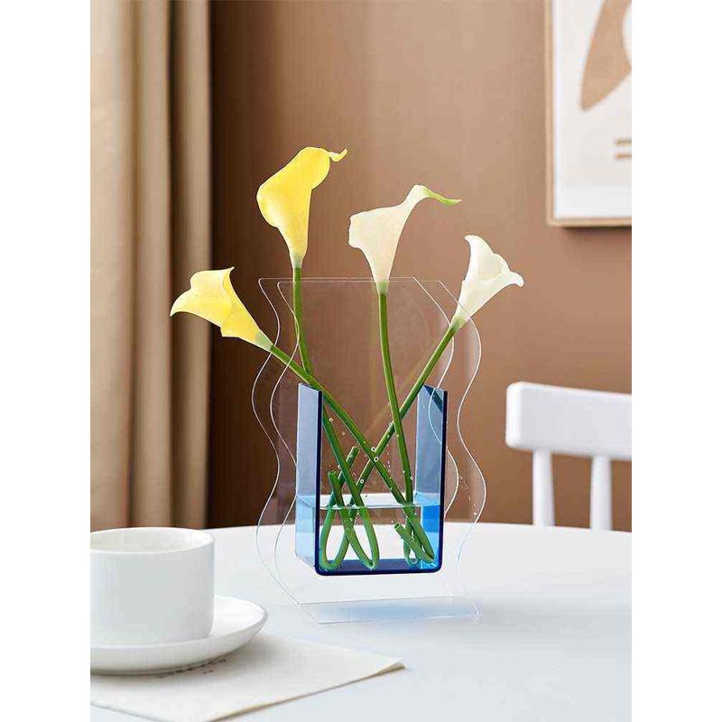 北欧简约透明亚克力小花瓶干花花器创意客厅插花网红桌面装饰摆件