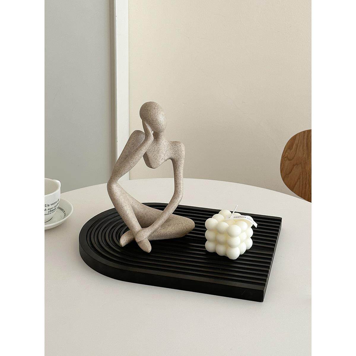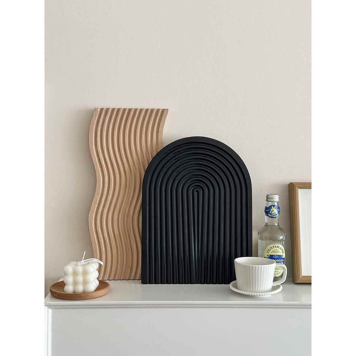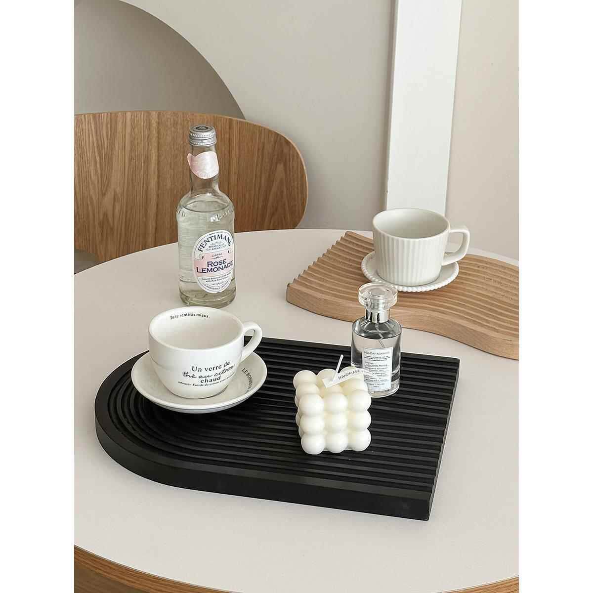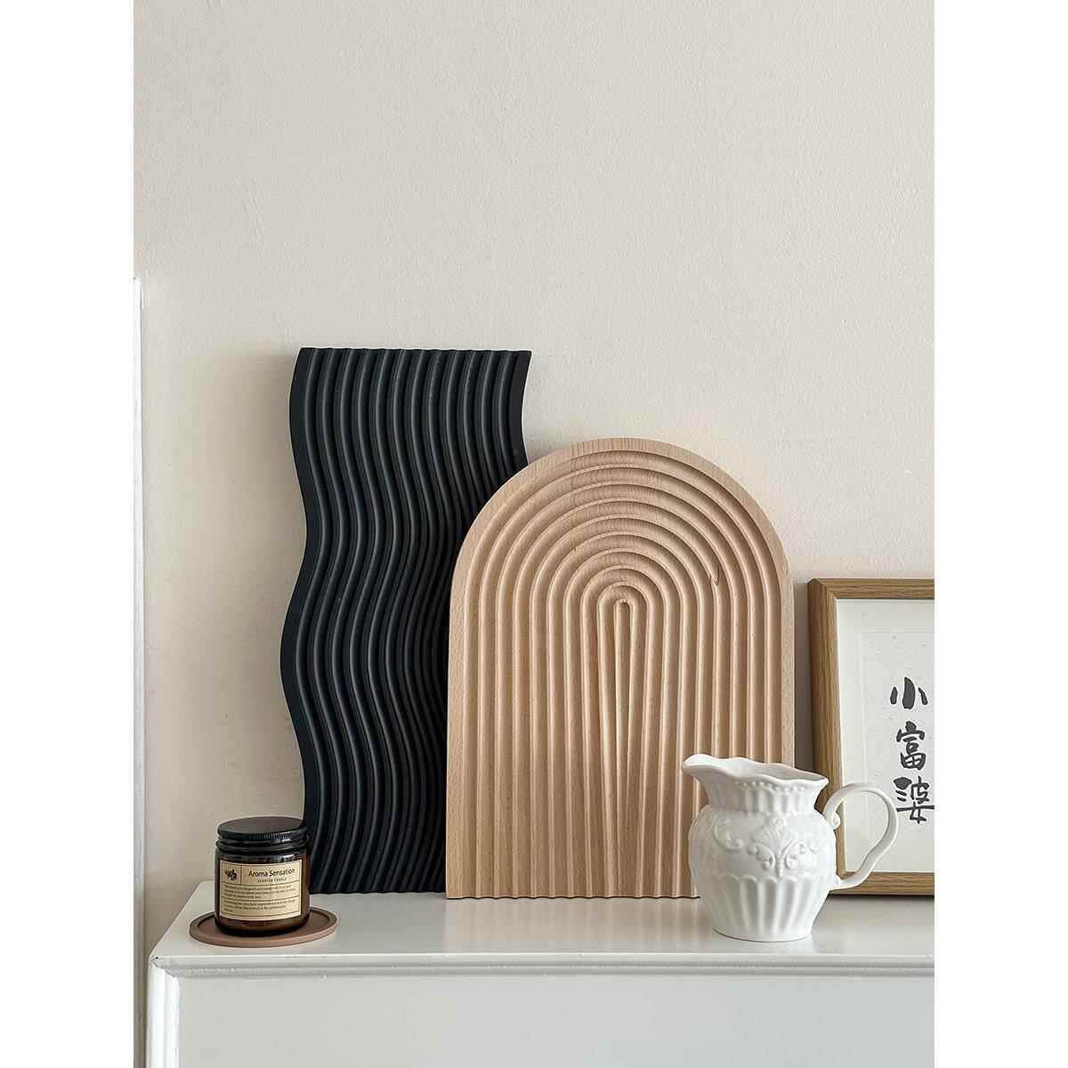 北欧水波纹木质板黑色托 托盘ins风香薰收纳置物下午茶盘子拍照道