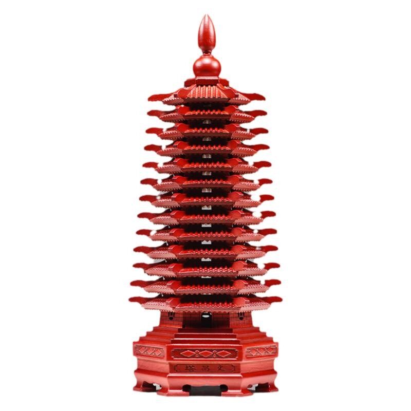 红色桃木雕刻十三层文昌塔摆件木质13层九层木制客厅书桌书房工艺