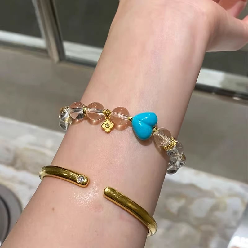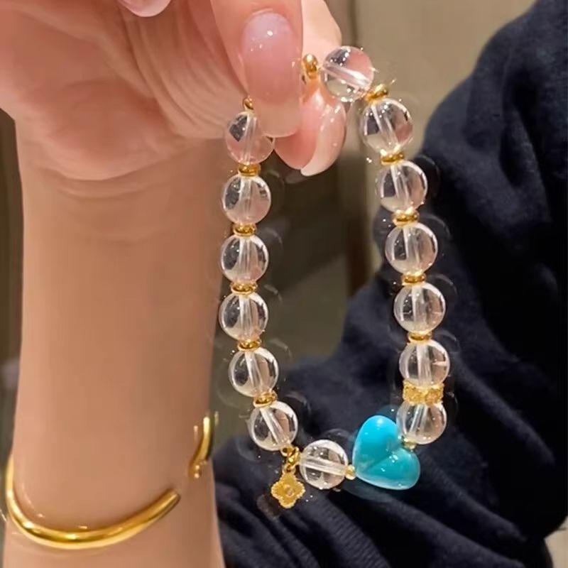 新中式仿绿松石仿白水晶手链女新款四叶草高级感手串礼物送女友