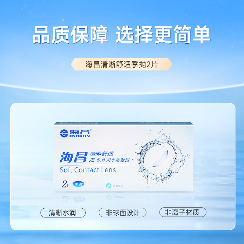 海昌清晰舒适季抛2片装隐形近视眼镜透明片旗舰店官网正品水润