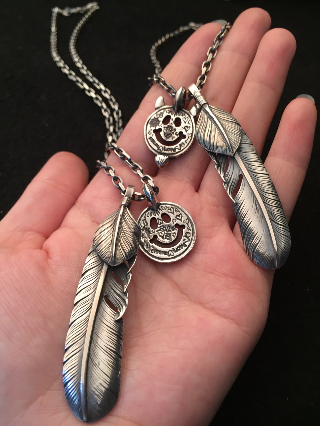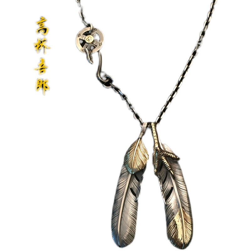 手工高桥吾朗925银吊坠羽毛项链男女高桥精工套装摇滚配饰项链潮