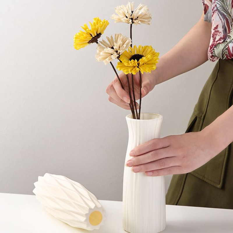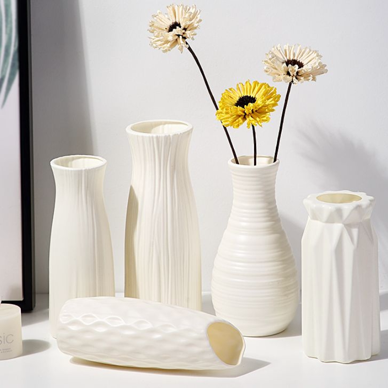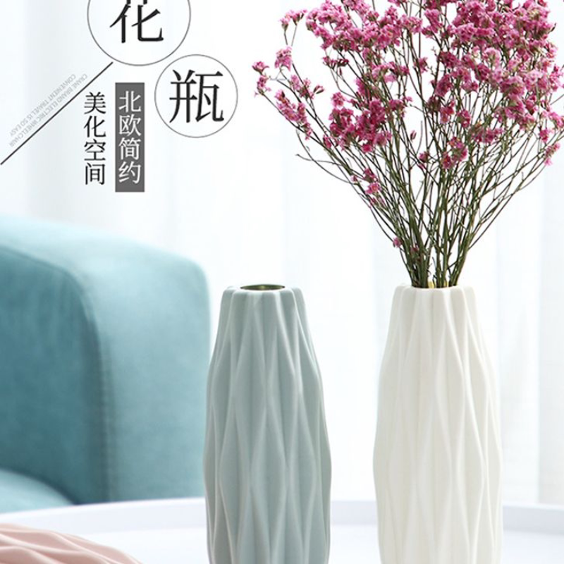 塑料花瓶家居插花假花客厅现代创意简约小干花白色装饰品摆件