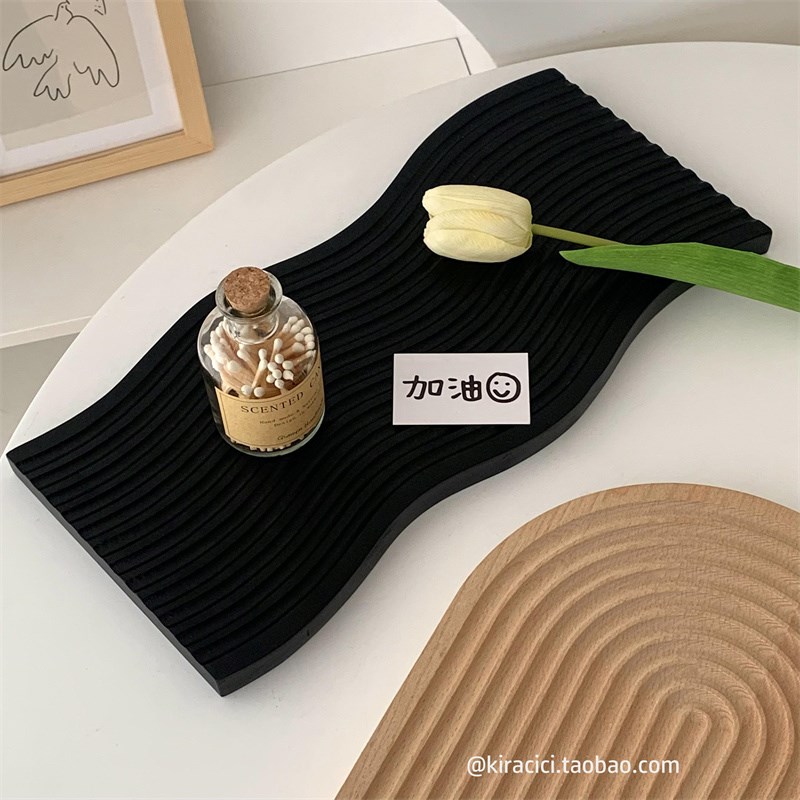 ins黑色木质托盘摆件香水首饰展示收纳盘高级感拍照道具客厅装饰