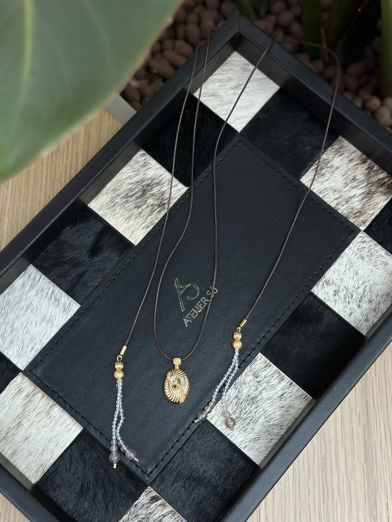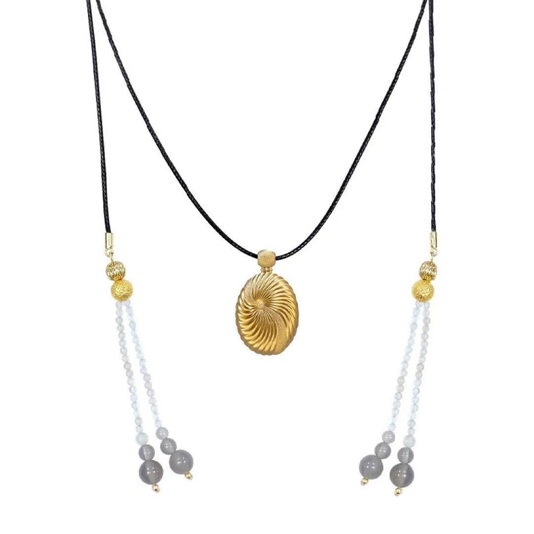 ATELIERSO 香水瓶蜡绳黑玛瑙/灰玛瑙项链