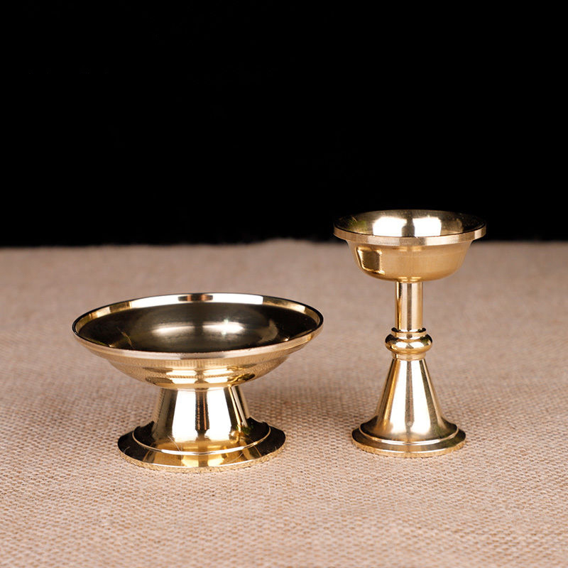 藏传黄铜护法杯供杯 圣水杯抛光光面护法盘家居大中小多款可选