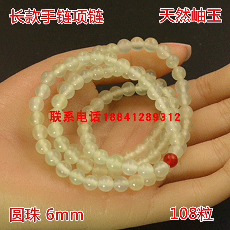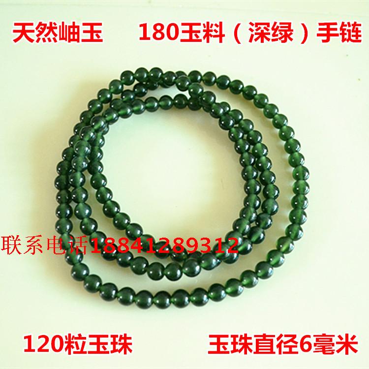 天然岫玉180料深绿弹力绳缠绕式手链6毫米岫岩碧玉长款项链手链
