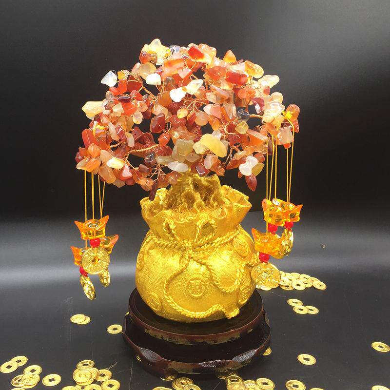 水晶摇钱树摆件招财钱袋树家居创意酒柜家装饰品客厅电视柜发财树