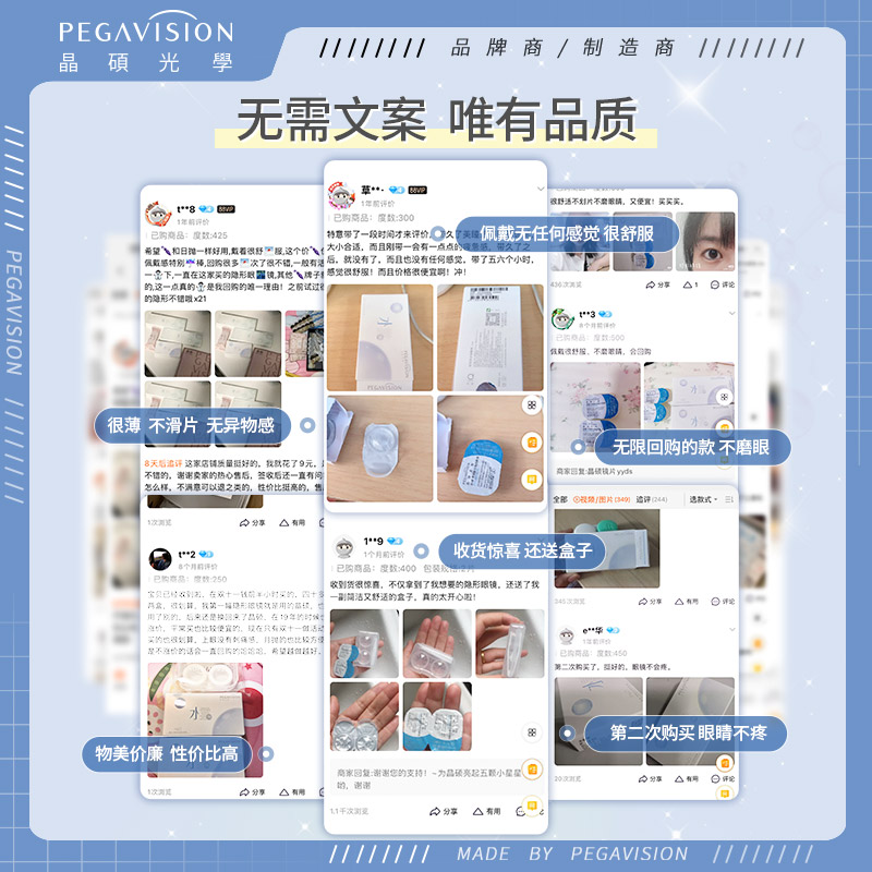 【水蓝片】晶硕透明片近视隐形眼镜季抛2片护理液水润舒适透氧