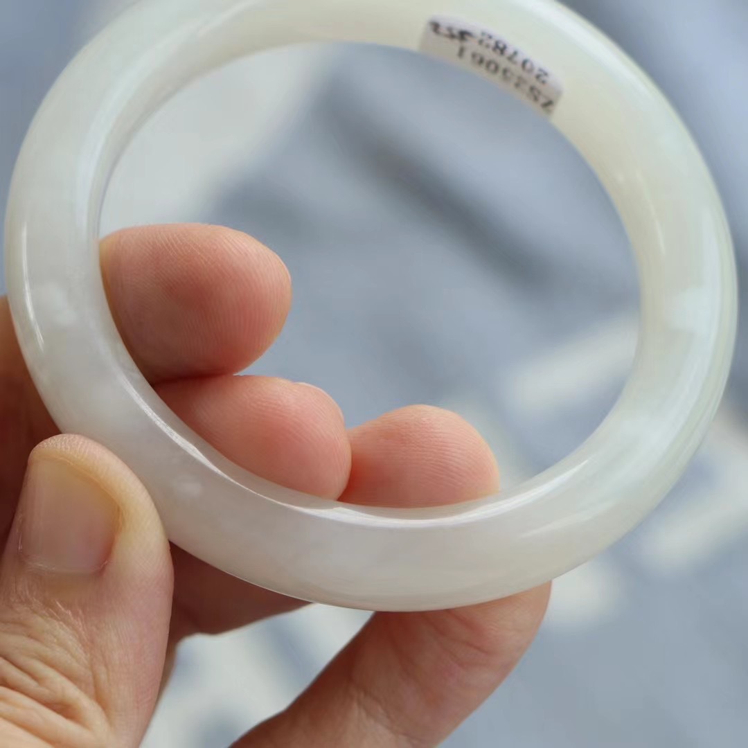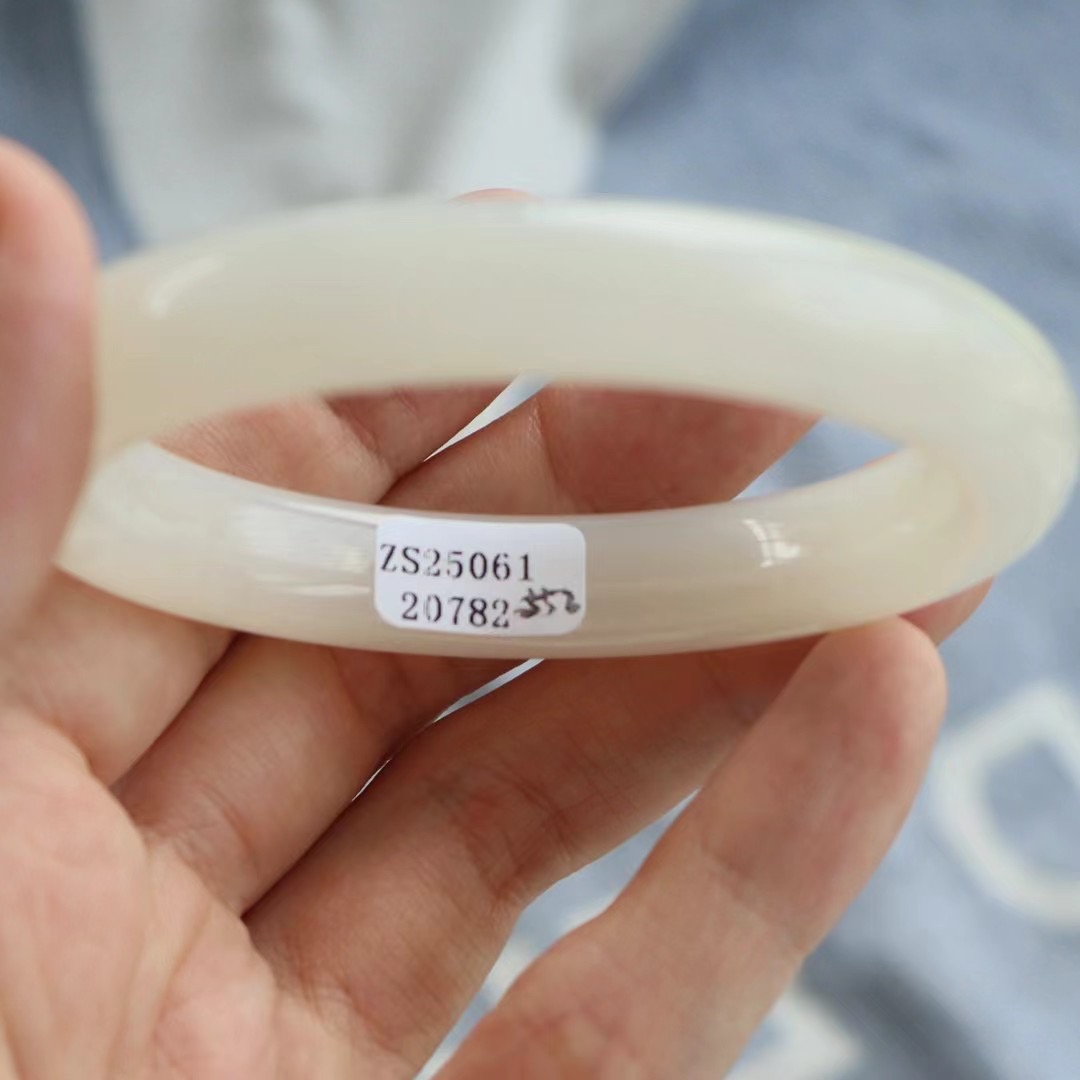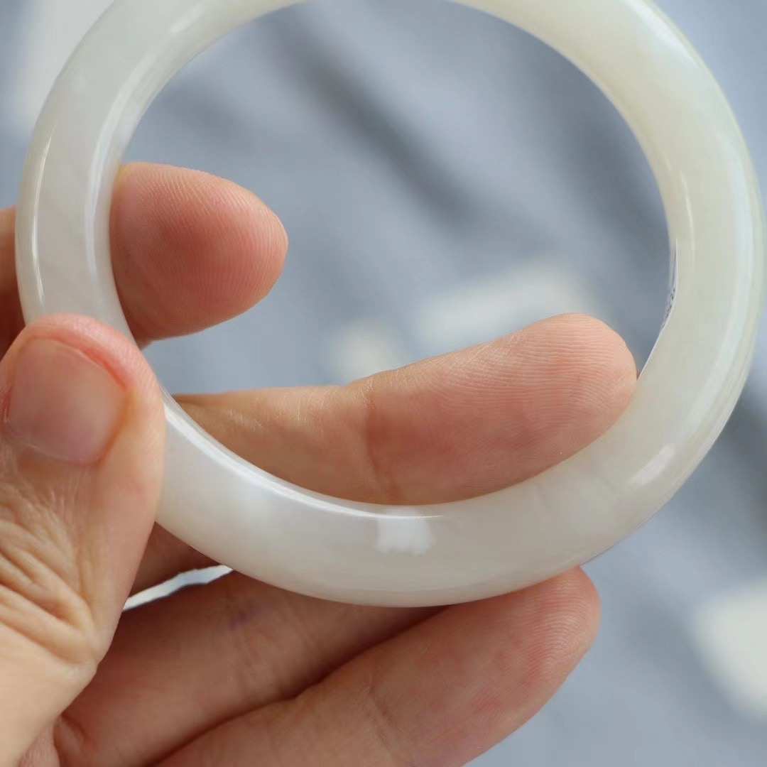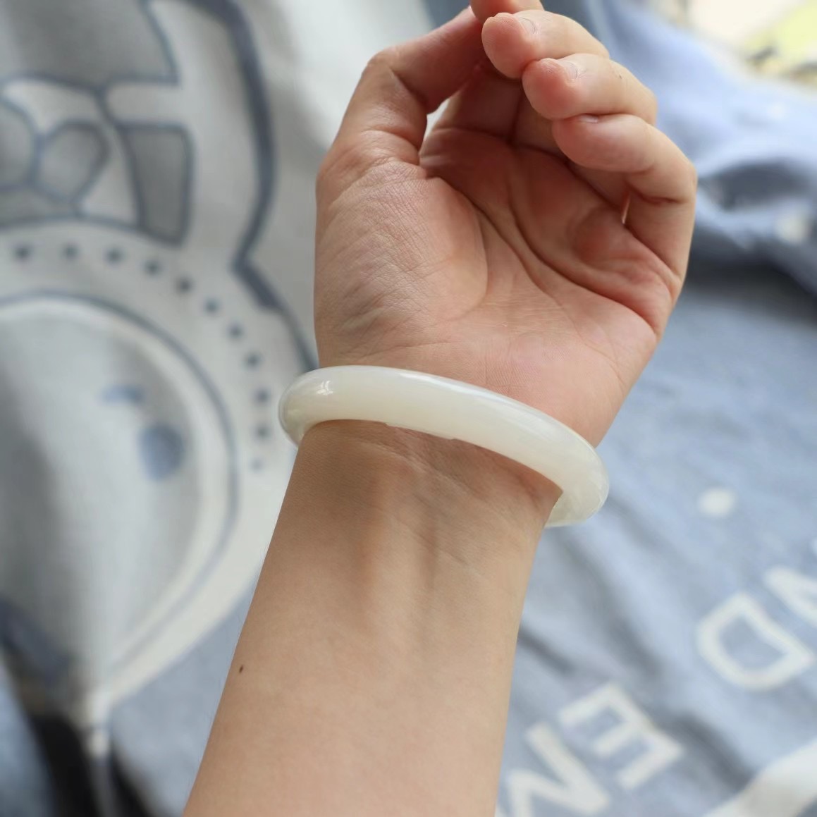 圈口保真天然和田玉手镯55圈口证6120782和田玉淡藕粉底白玉白色