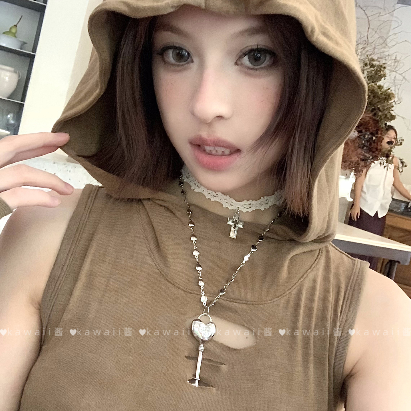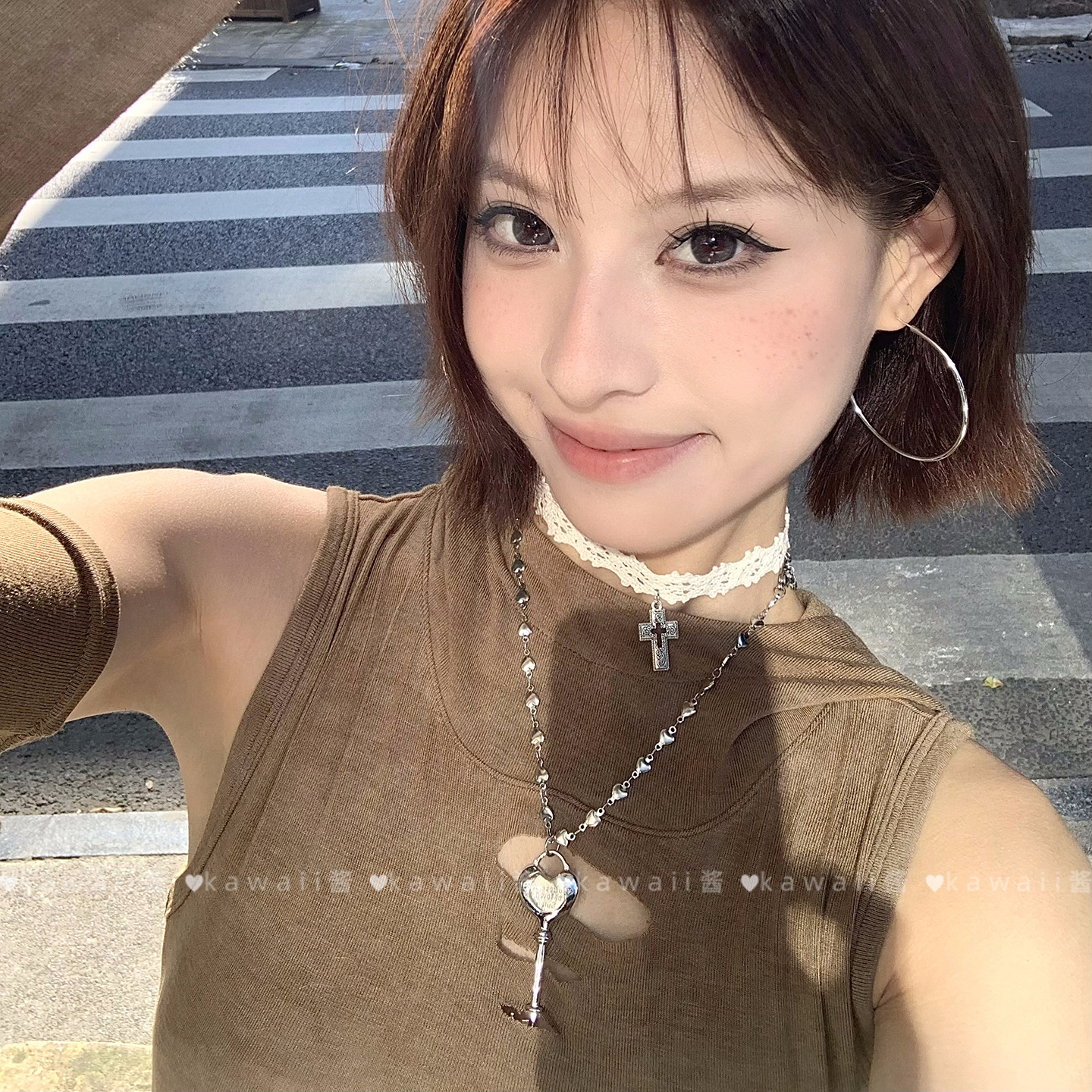 纯欲风白色蕾丝十字架绑带项链重工choker爱心钥匙叠戴锁骨链颈链