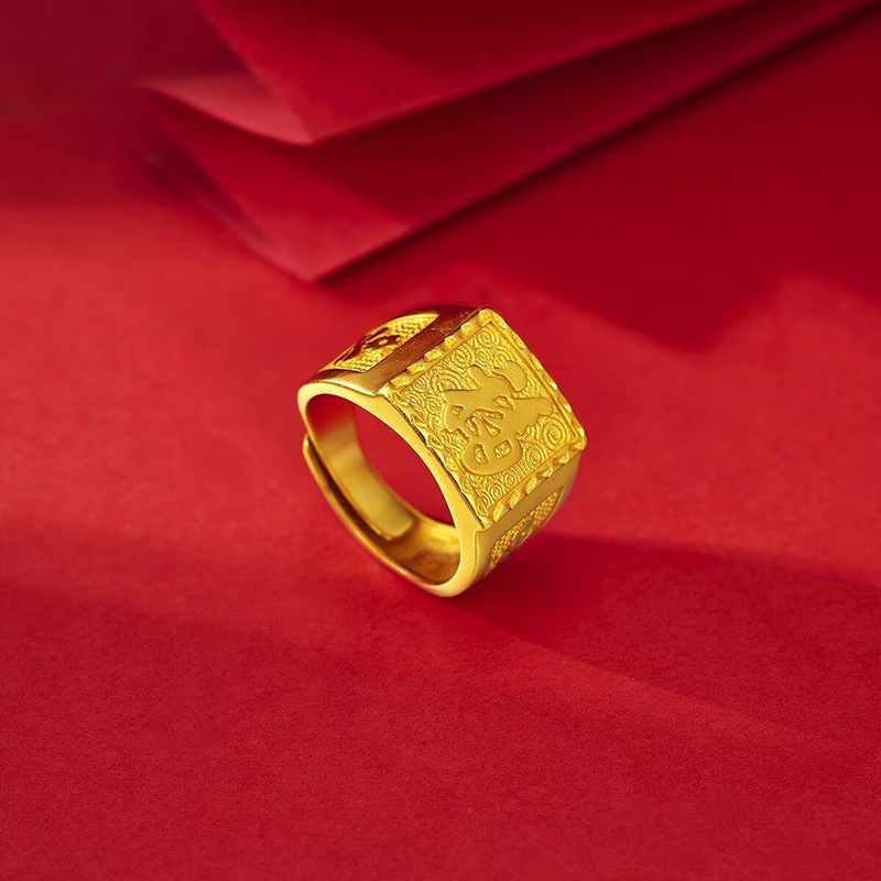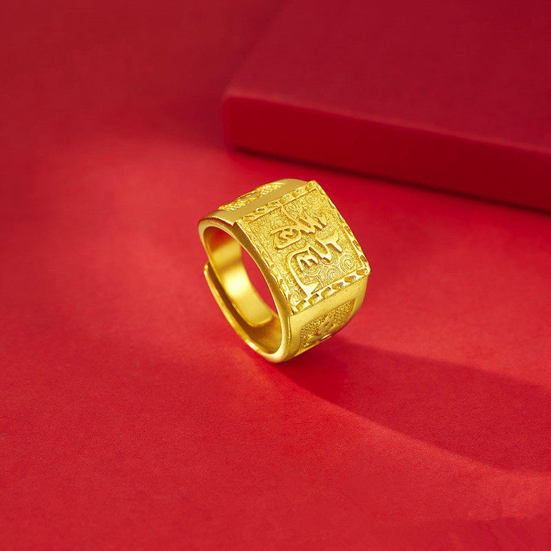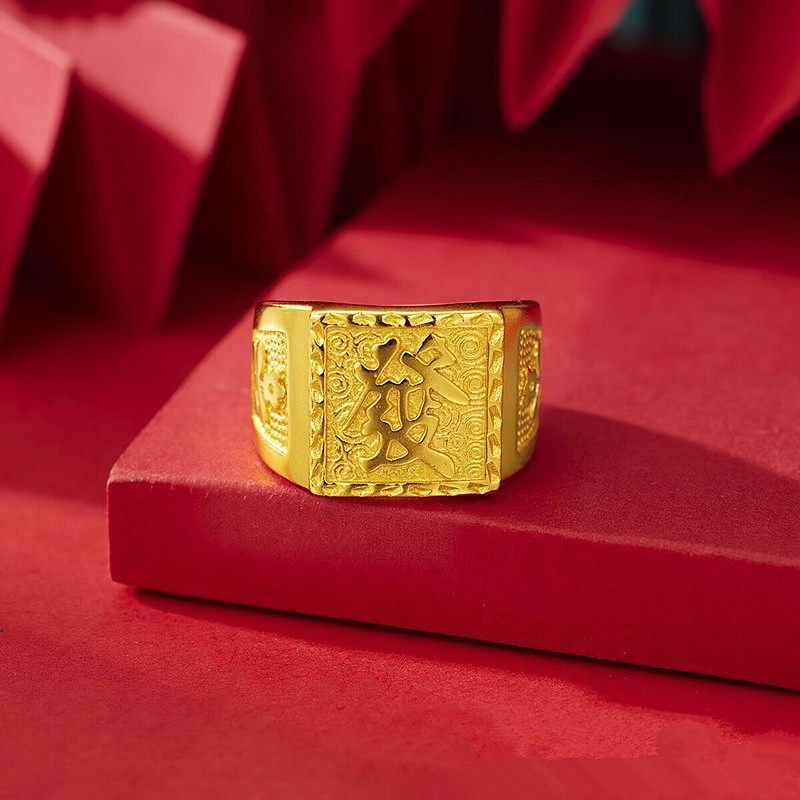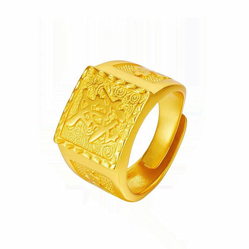 新款24K黄金戒指男款仿金包银福發财字男士活口指环送爸爸送老公