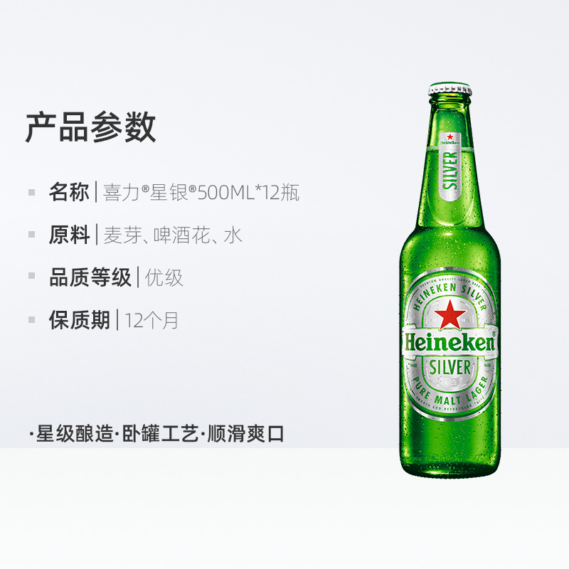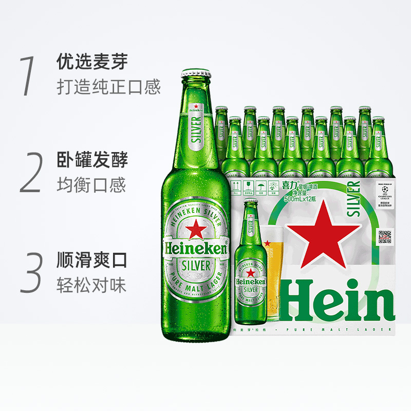 Heineken Silver/喜力星500ml*12大瓶装啤酒全麦酿造整箱囤货包邮