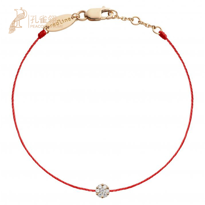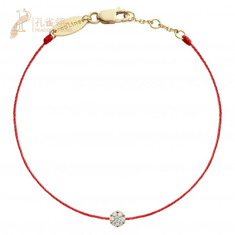 redline红绳年Illusion 0.05克拉圆形钻石黄金绳制女士手链