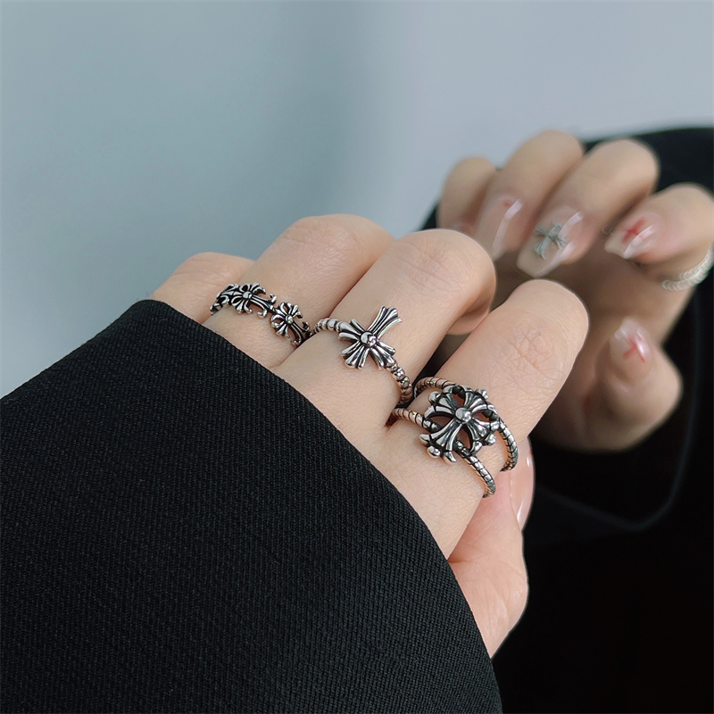 复古十字架戒指男女网红轻奢小众设计个性高级感情侣开口女生指环