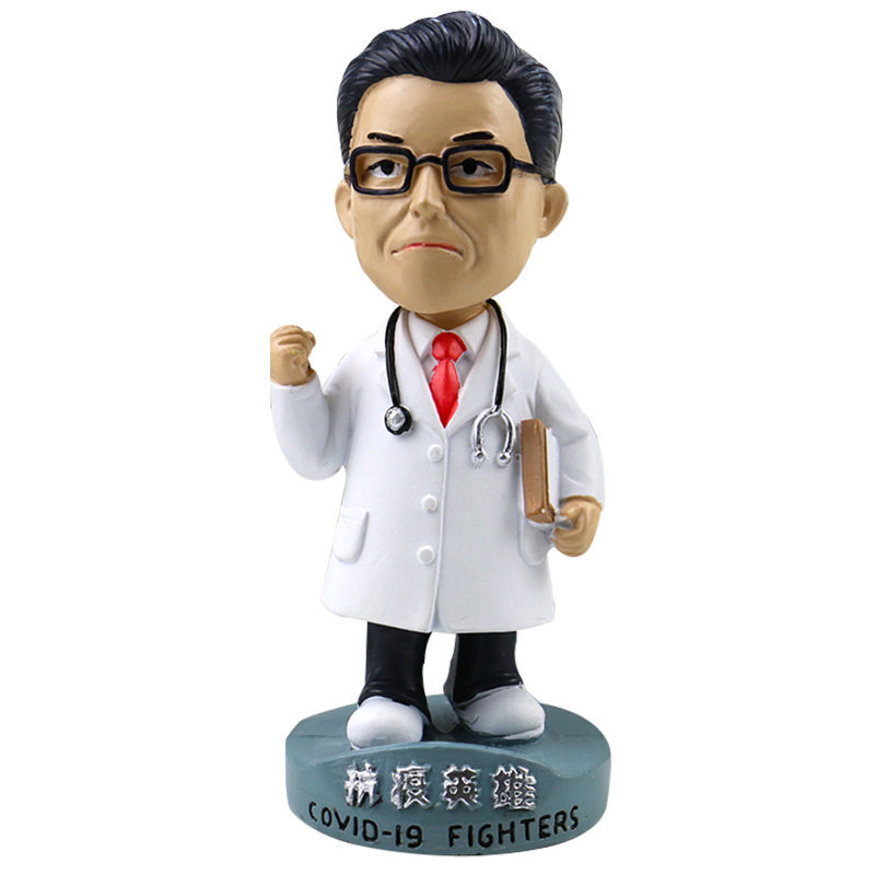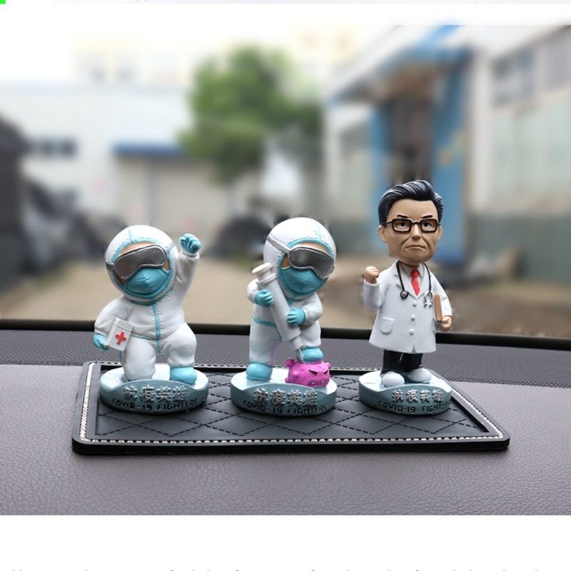 车载摆件抗疫纪念品白衣英雄汽车摆件医生可爱摇头公仔家居装饰品