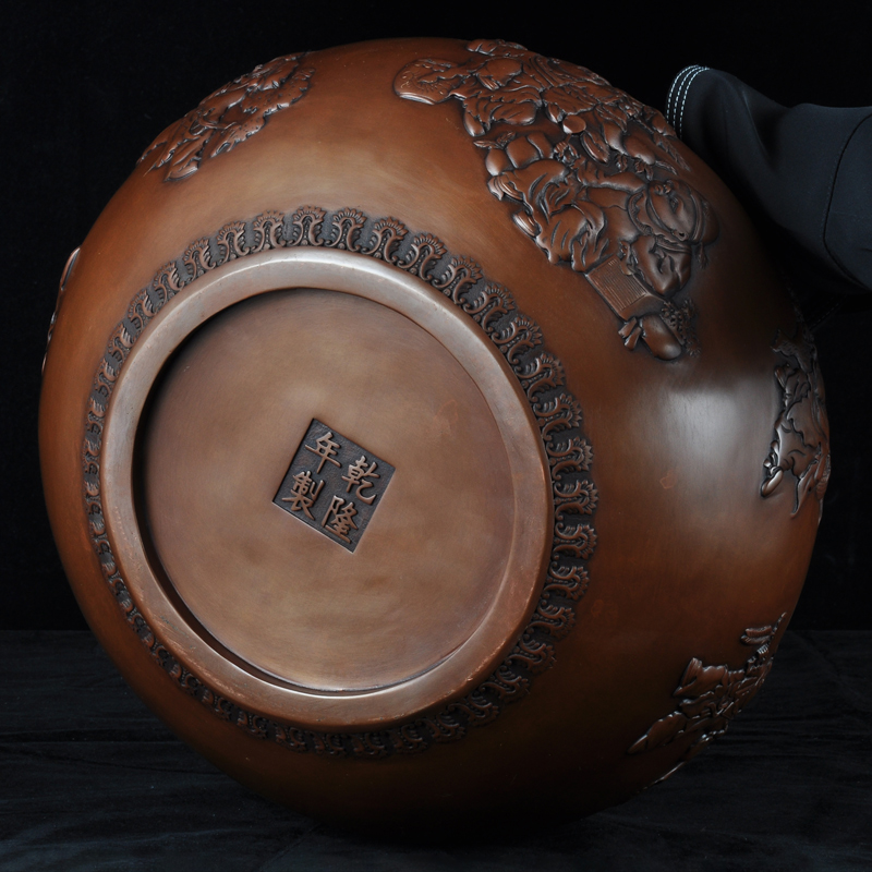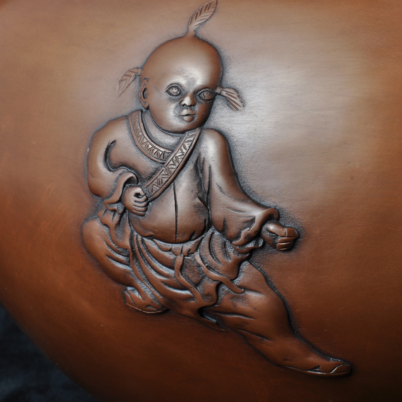 紫铜婴戏图缸摆件招财铜缸聚宝盆家居客厅酒柜玄关装饰品乔迁礼品
