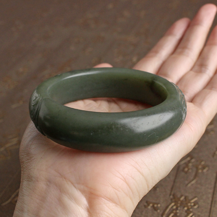 N54.38浅青玉料子青玉籽料雕花手镯/玉镯 无原皮 朕®开仓