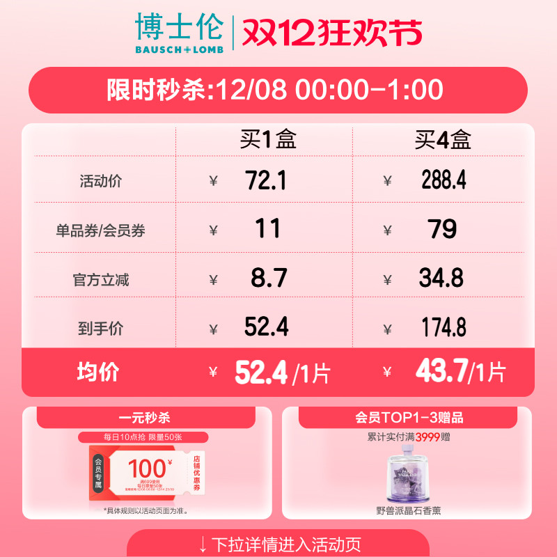 博士伦官方旗舰店ultra奥澈硅水凝胶月抛装进口隐形眼镜【专享】