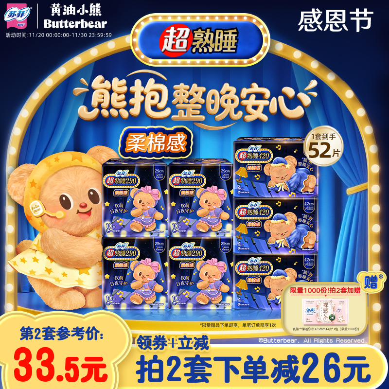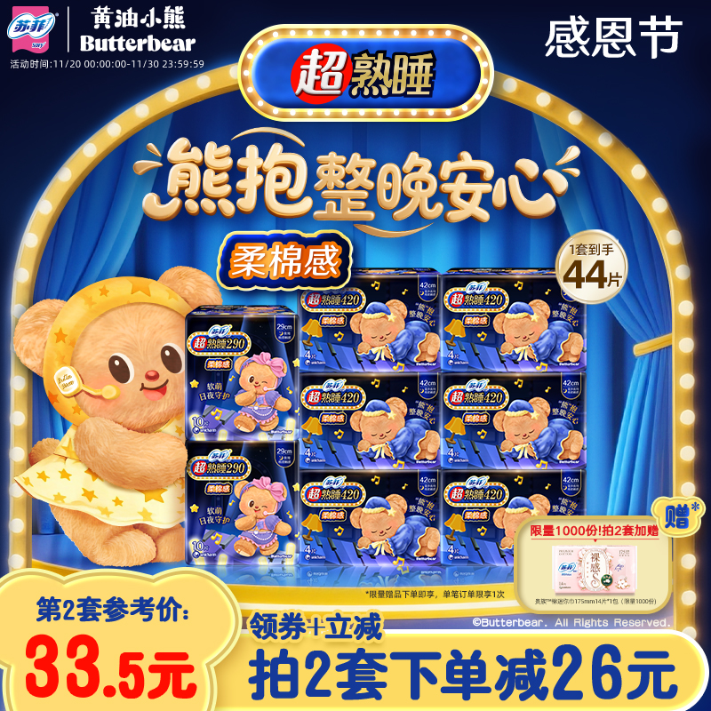 【黄油小熊】苏菲超熟睡柔棉感夜用超长卫生巾量大防漏420+290组