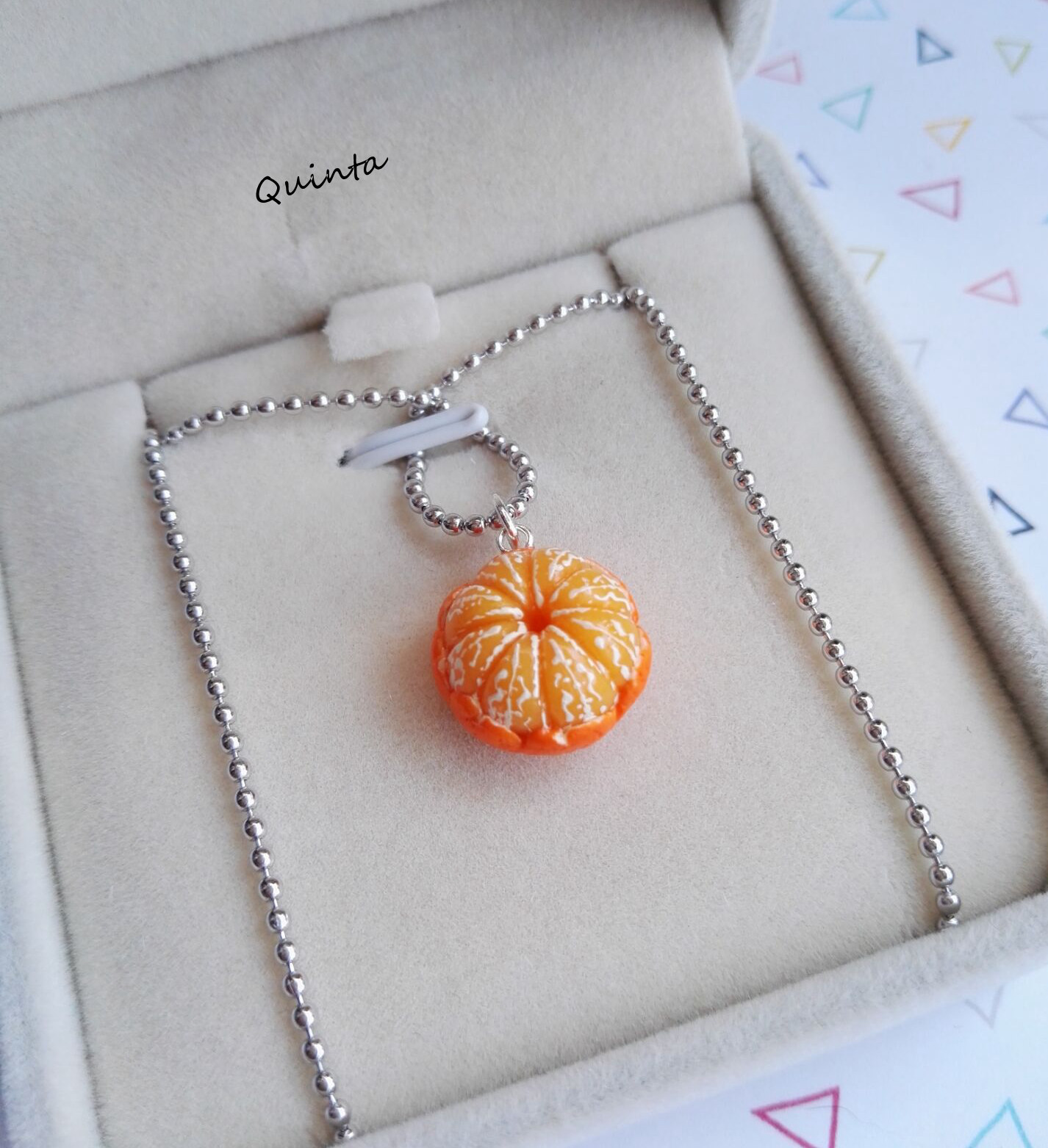Quinta原创手工剥皮桔子橘子项链925银链创意个性原创设计包邮