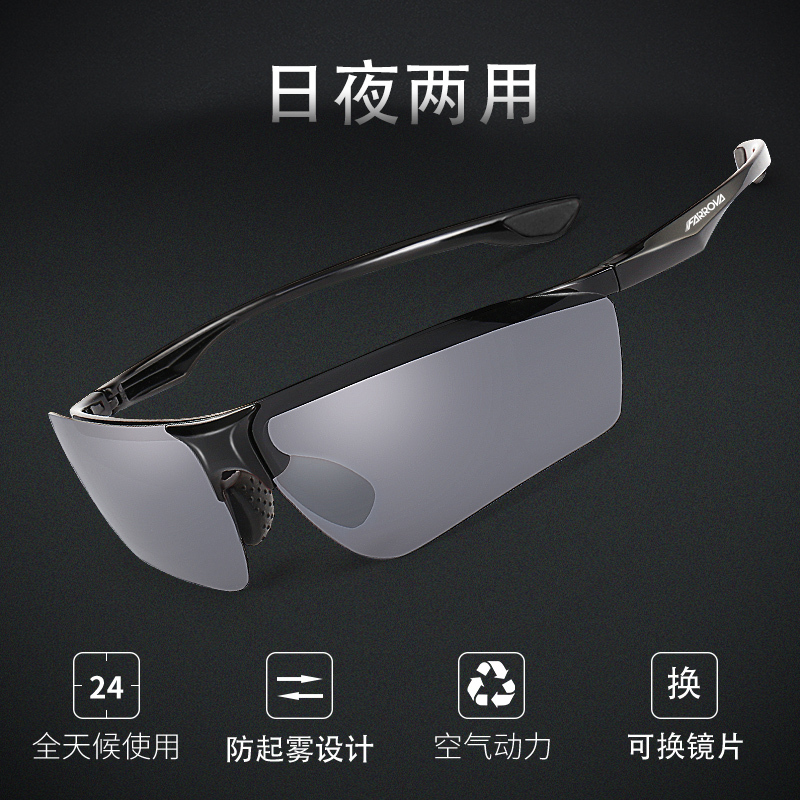 专业偏光运动太阳眼镜男跑步女马拉松墨镜夜跑日夜两用款超轻徒步