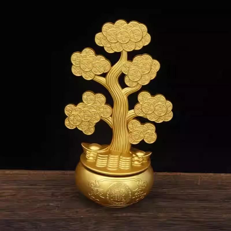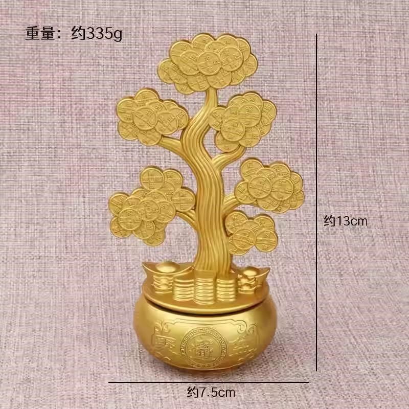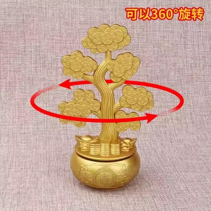新款创意黄铜可旋转摇钱树聚宝盆装饰品摆件乔迁店铺前台开业送礼