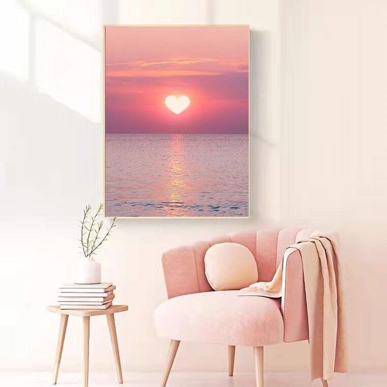 装饰画海洋粉色客厅壁画背景新款欧式简约现代房间卧室挂画