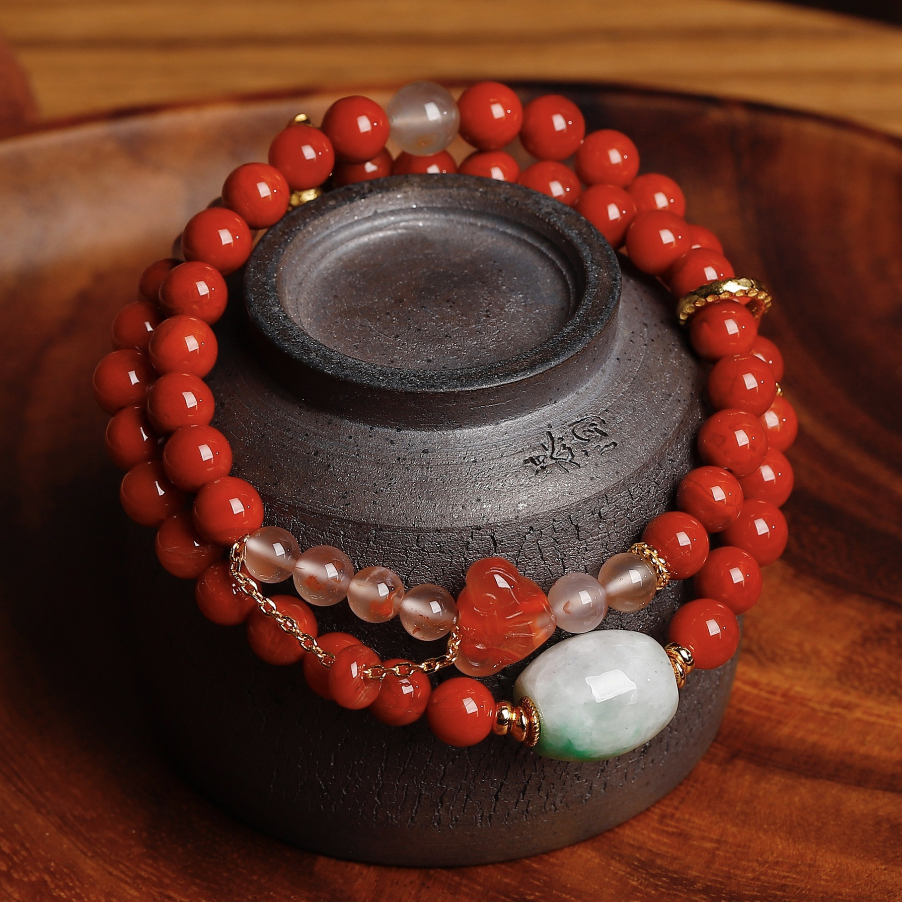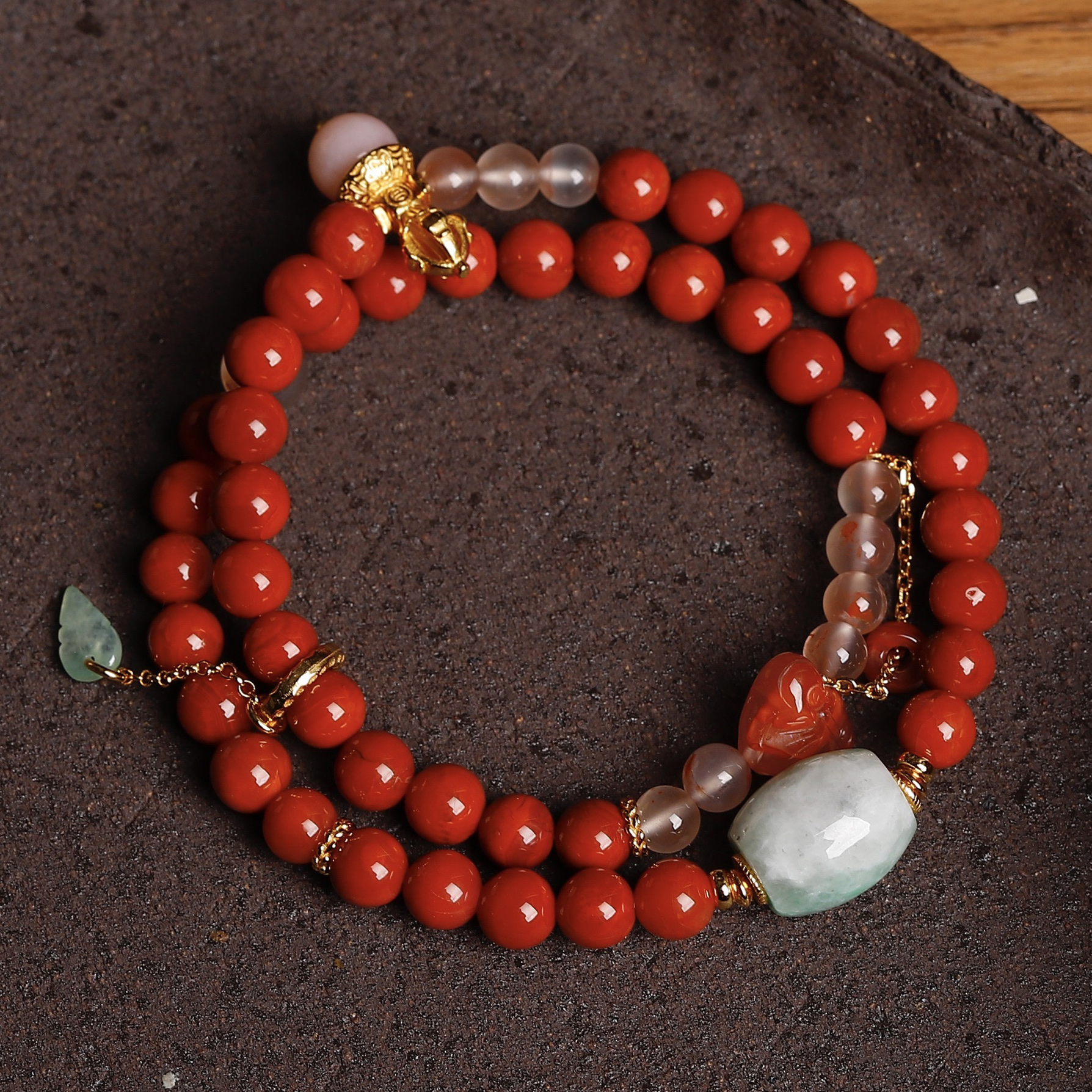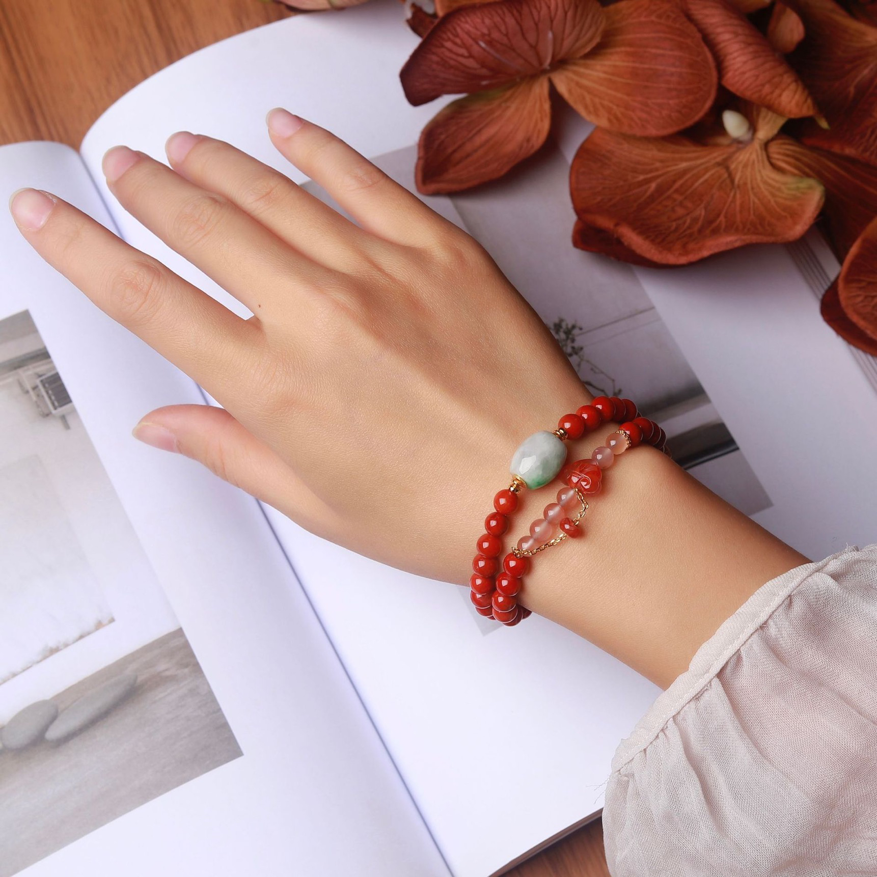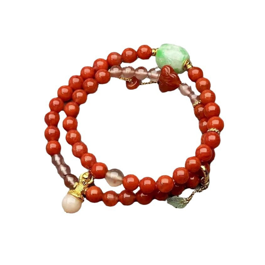 天然满肉南红串珠手串女翡翠路路通如意平安扣粉澳宝镶银多宝手链