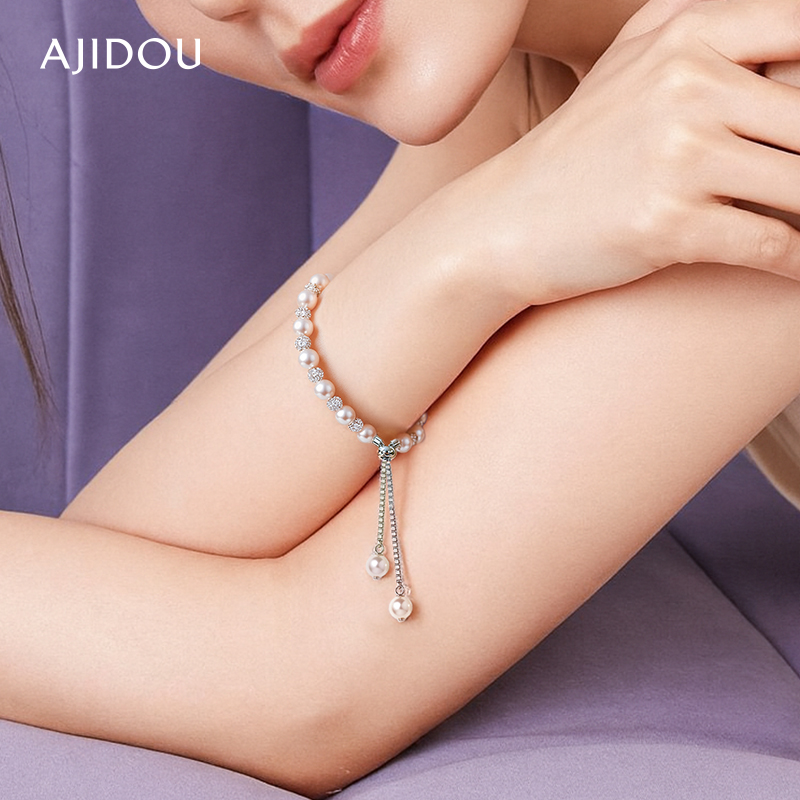 AJIDOU阿吉豆手链女款珍珠手串温婉珍珠抽拉式气质玫瑰紫手环手串