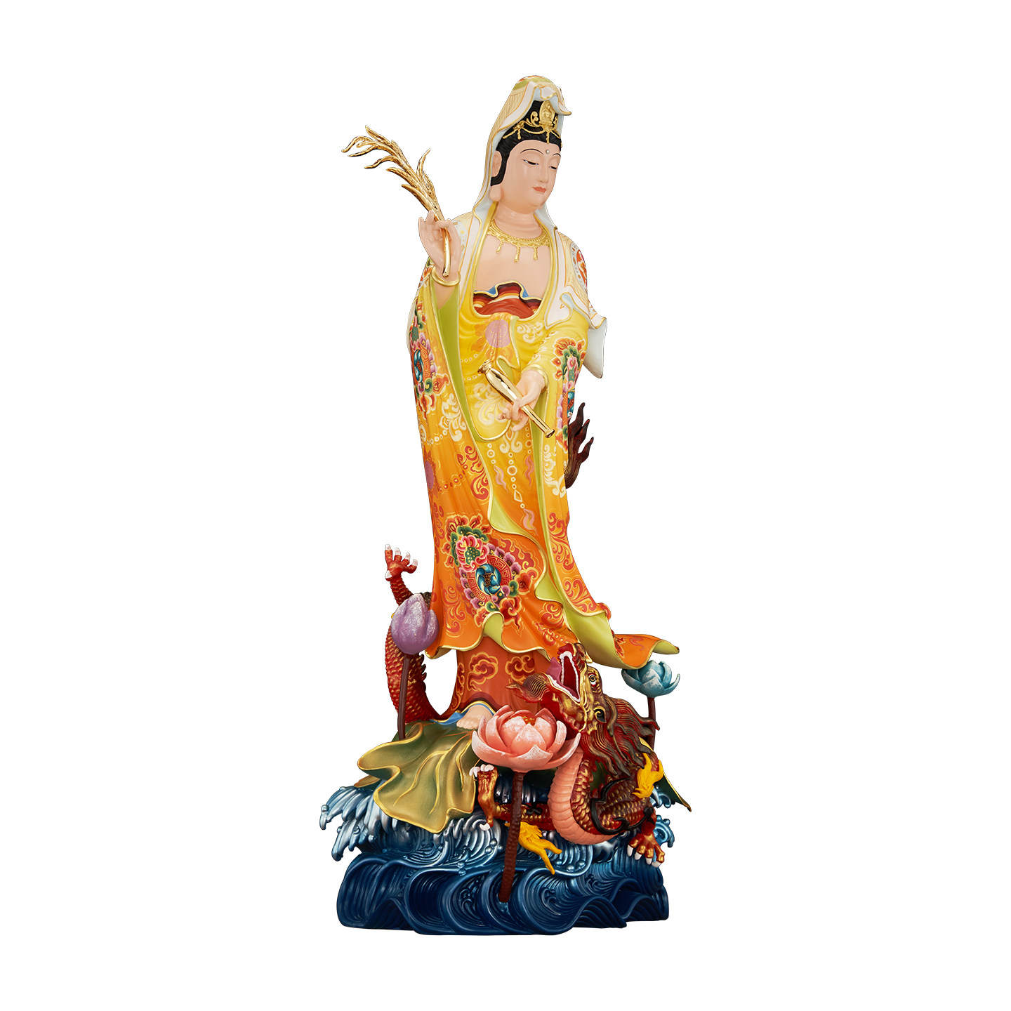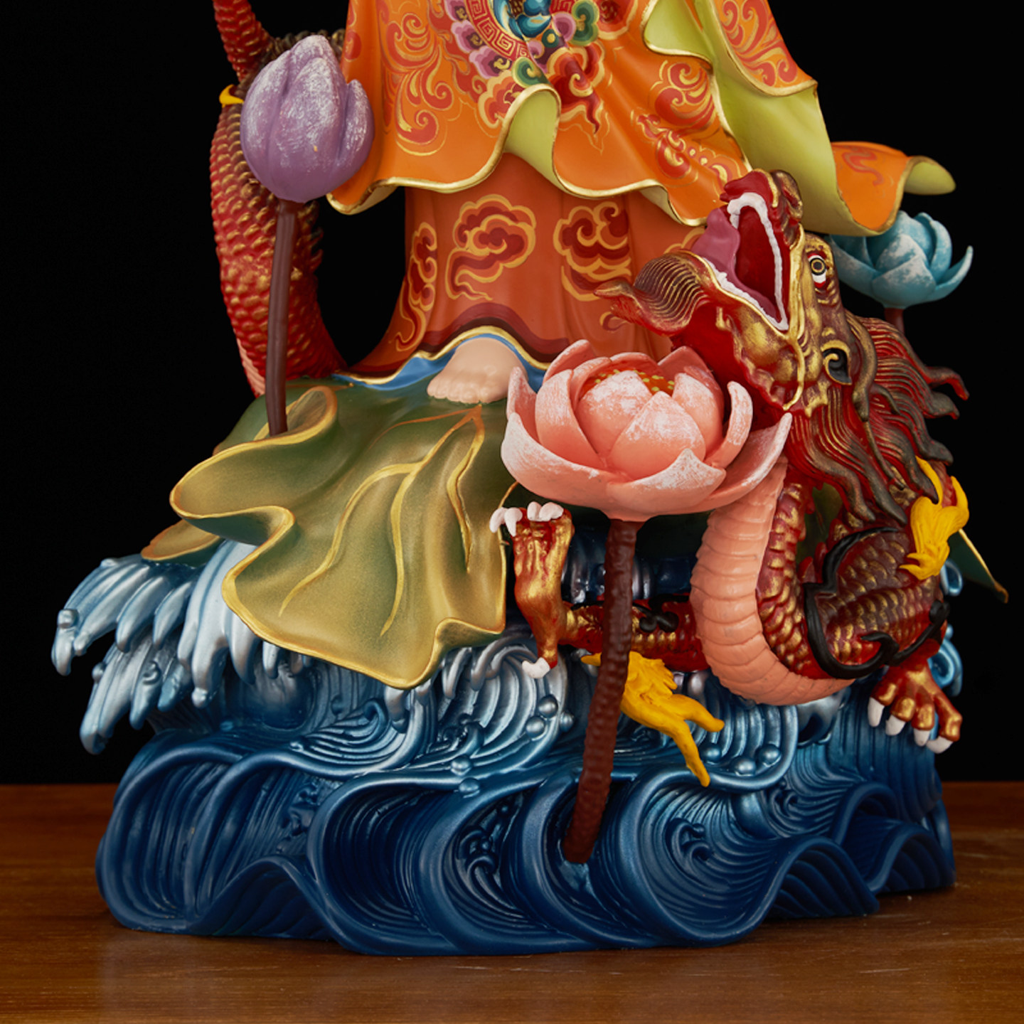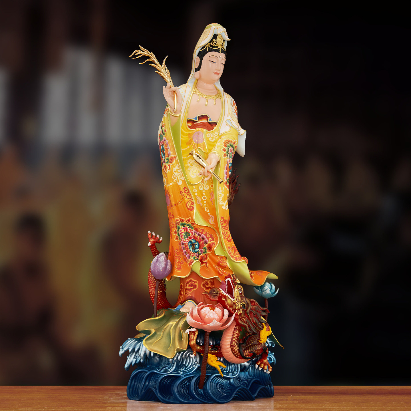 纯铜彩绘 乘龙观音 南海菩萨骑龙家用站像居家手工工艺摆件