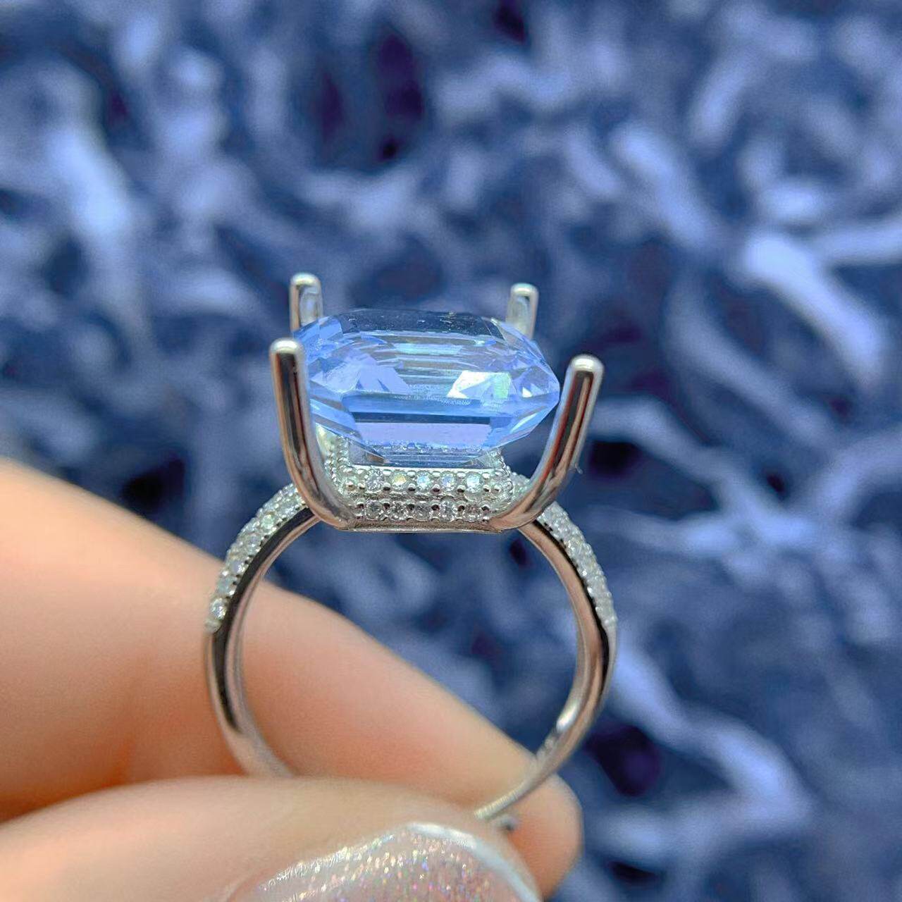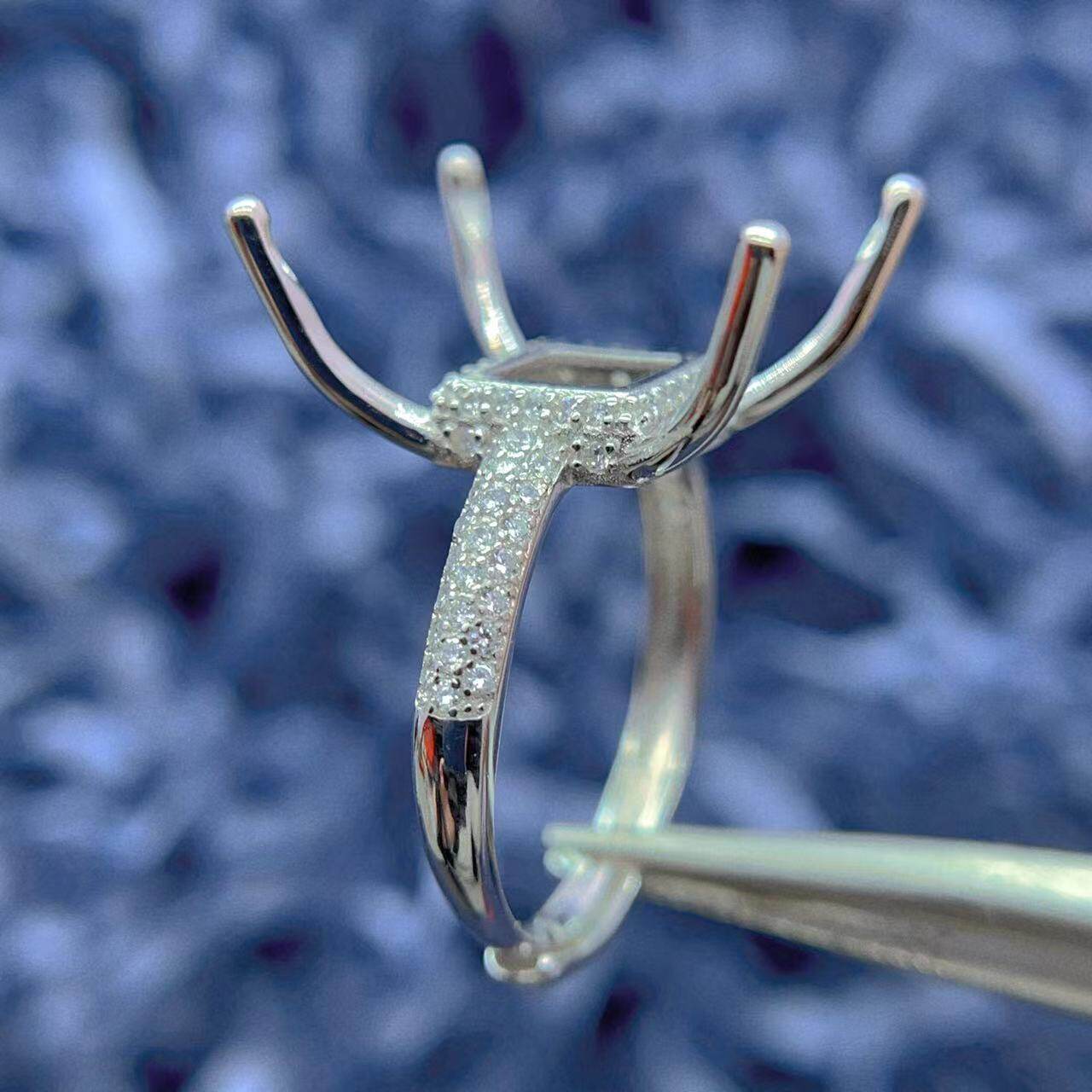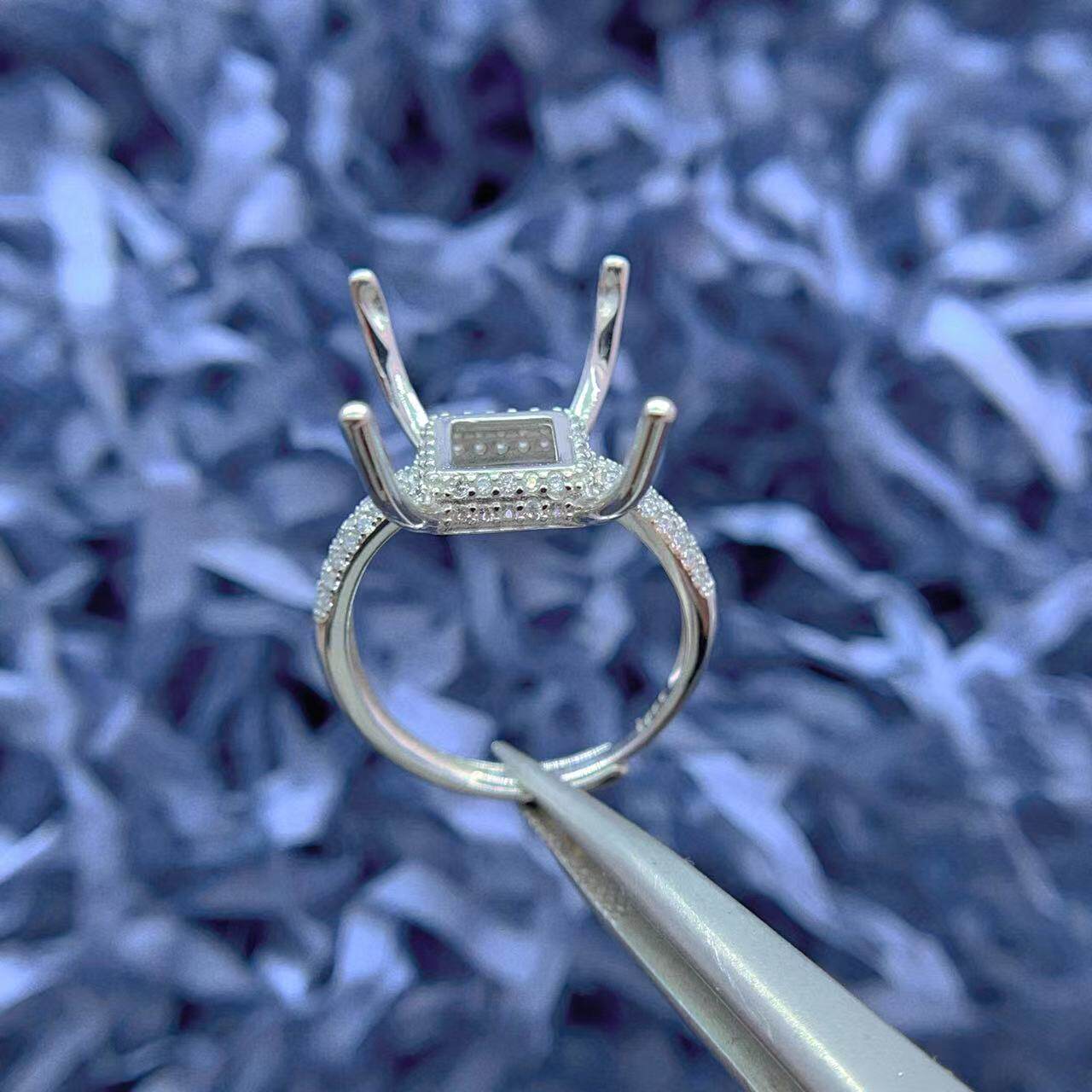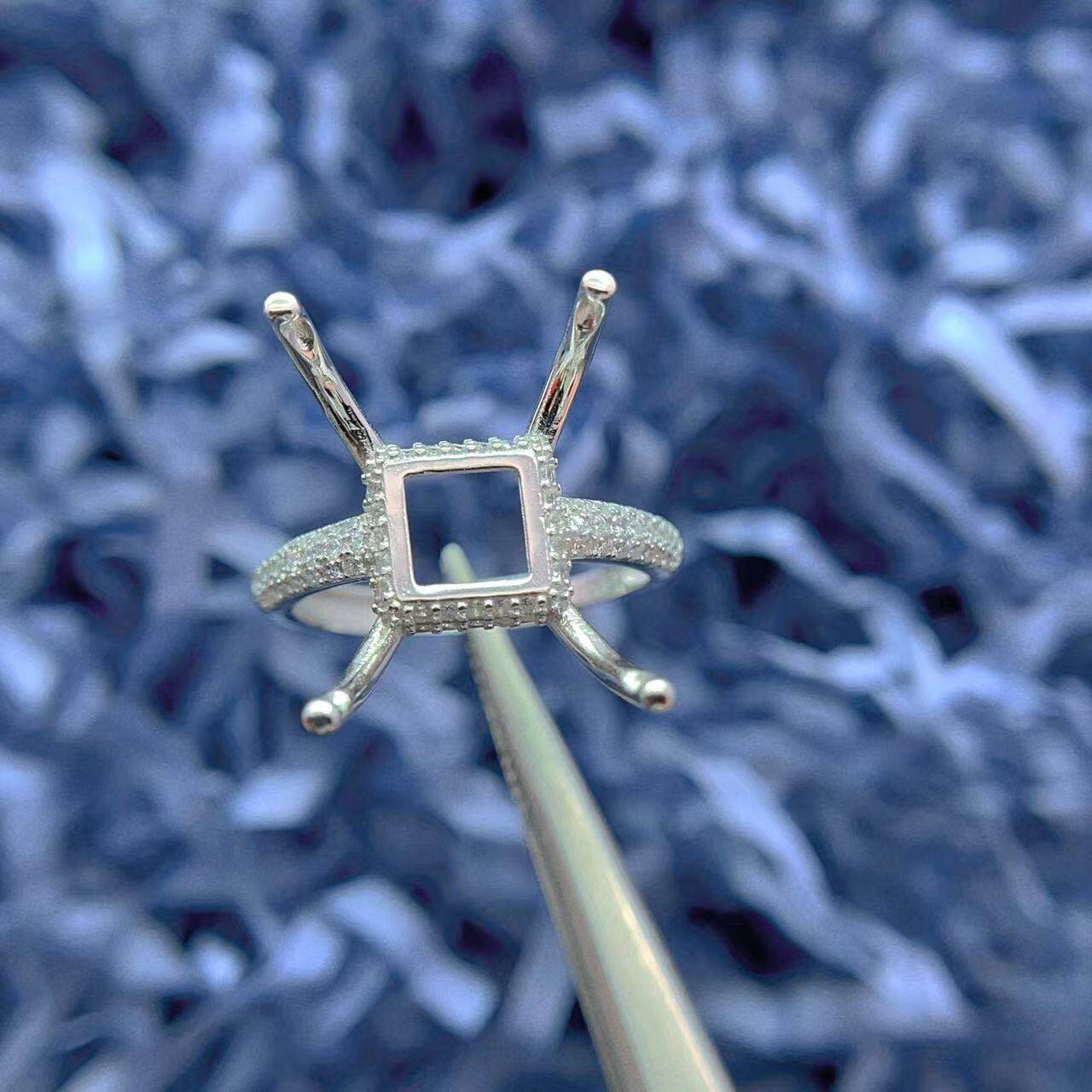 S925银戒指空托圆形方形万能戒指托10mm-15mm可用豪华双排钻底托